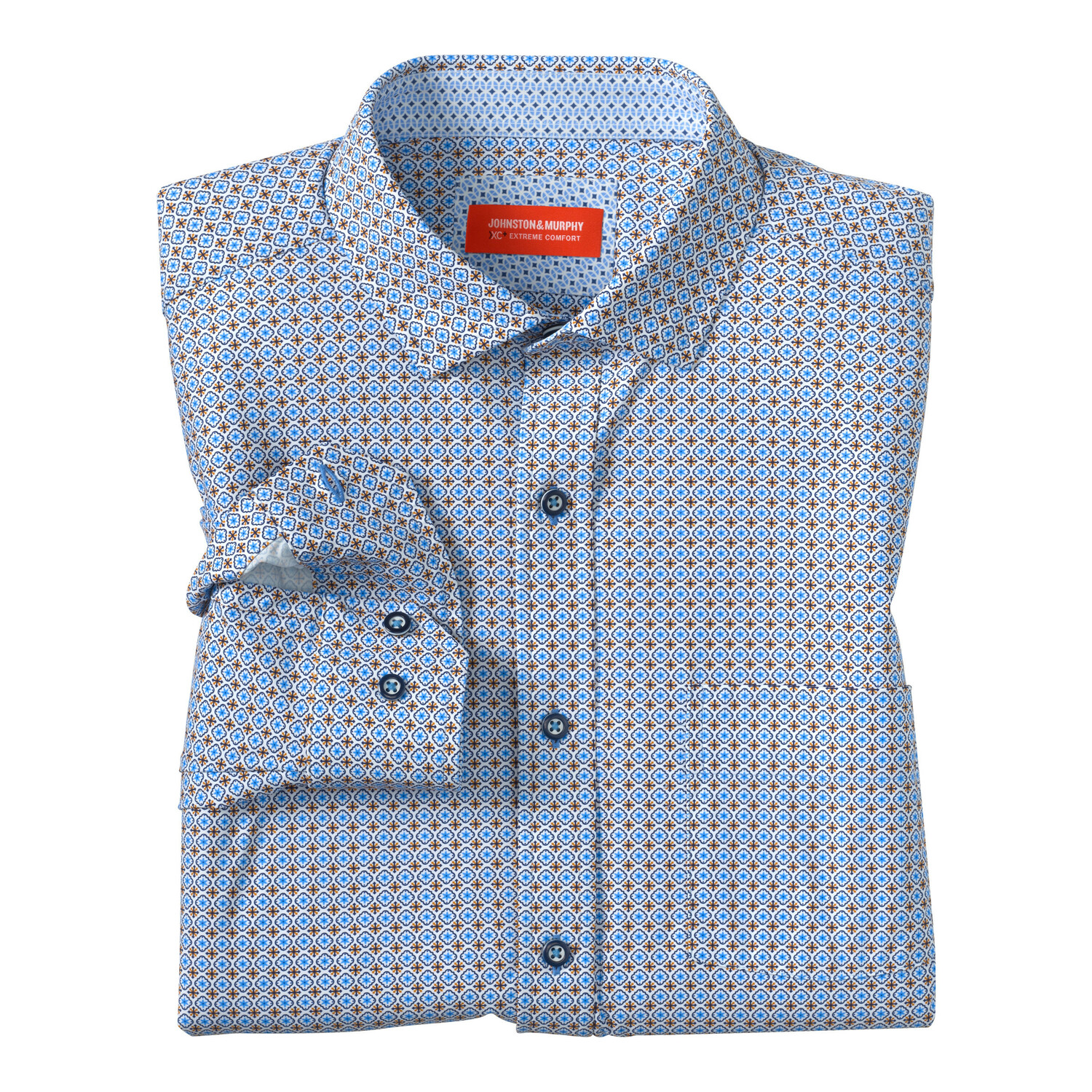 — A printed performance knit shirt ready for travel or long days on the go.