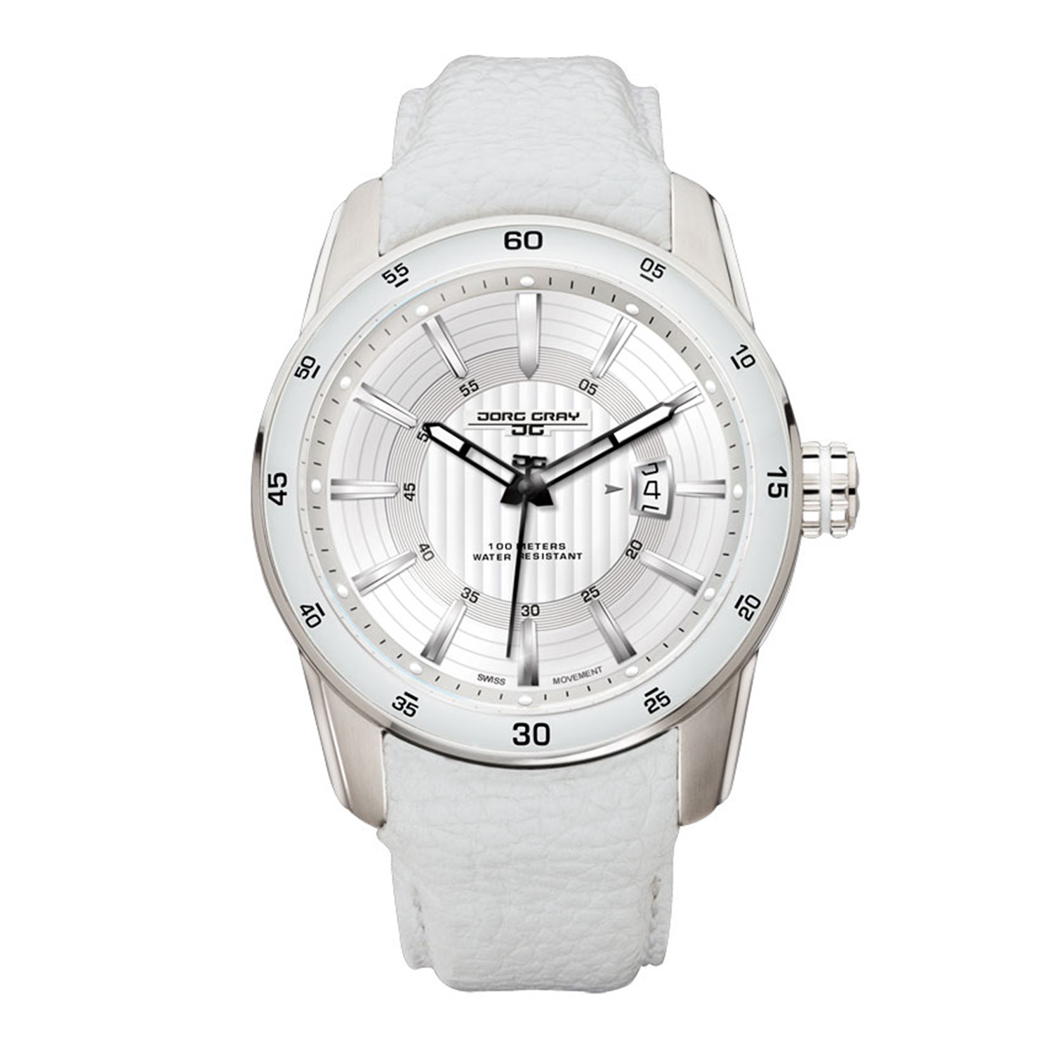 Striking a balance between stylish and sporty, this Jorg Gray wristwatch exemplifies an active, sophisticated lifestyle. With finely crafted details and a scratch resistant crystal, it's just the thing to go straight from the office to the weekend.