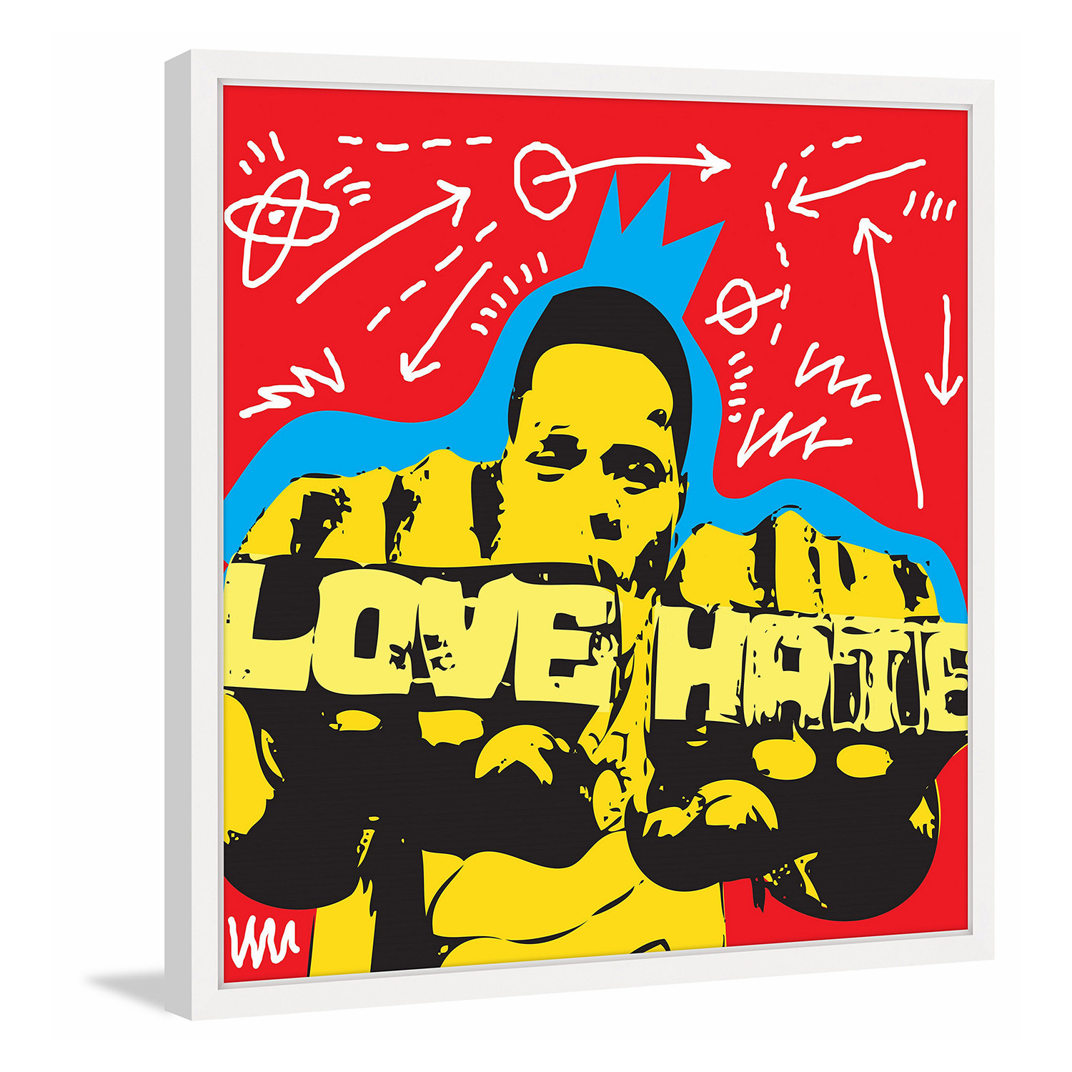 Reminiscent of New Hollywood glamour and street art subculture, this abstract framed print boasts extreme, vivid colors and a composite of surreal images for a modern twist on the old-school Pop Art effect.