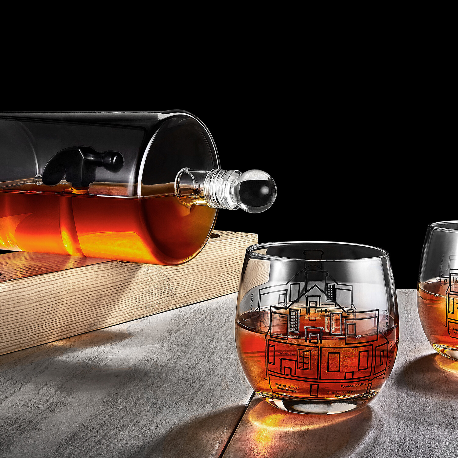 The Hammer Decanter Set is a one-of-a-kind addition to your at home-bar! The replica hammer sits on the inside while the whiskey swirls around it. The hammerhead is colored glass and will not discolor your golden nectar. Just because whiskey is in the name, don't let that stop you if you want to use it as a bourbon decanter, vodka decanter, or even rum!