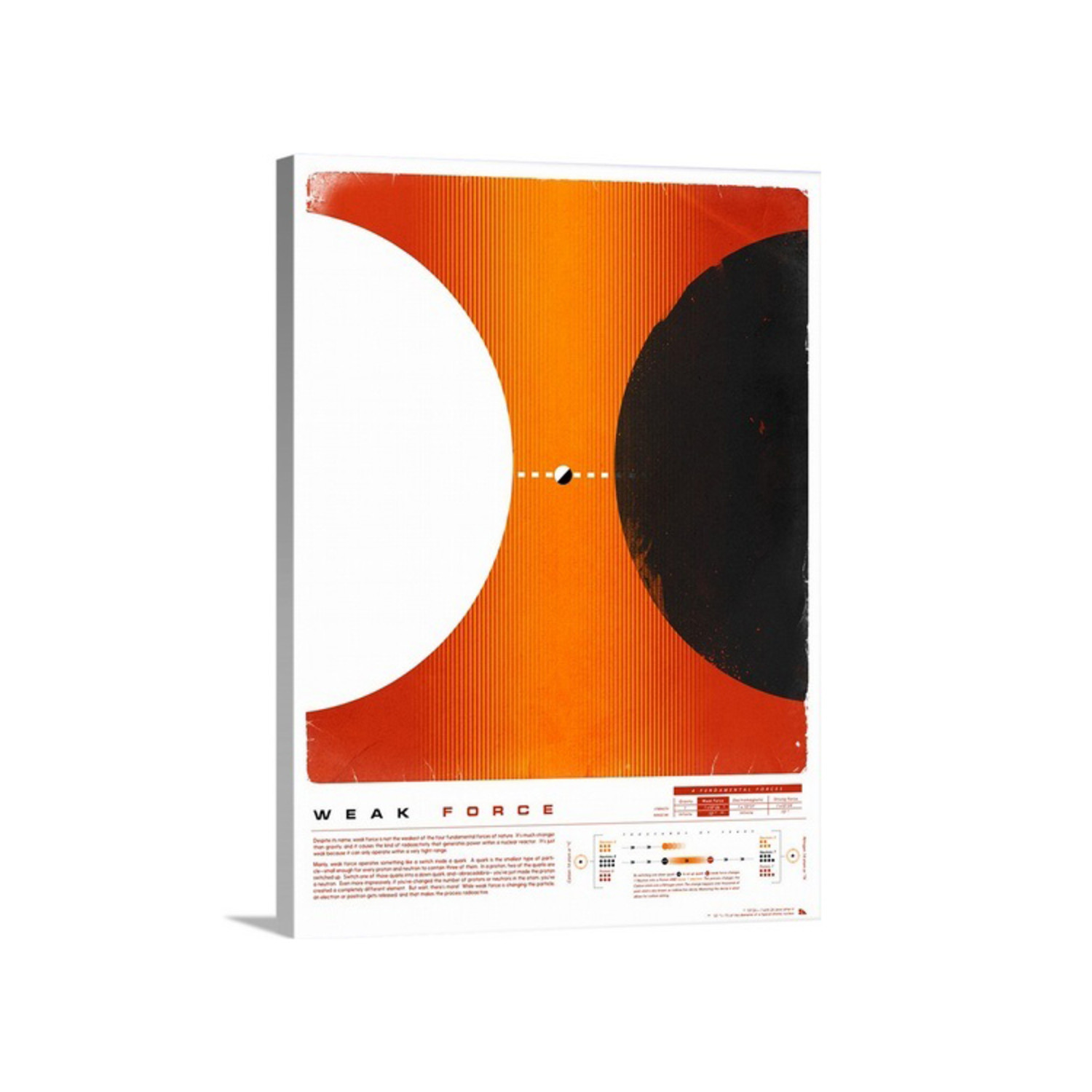 With echoes of the art deco prints, propaganda posters and pop culture that Justin Van Genderen loves, this gallery-wrapped canvas exploring Weak Force is both a visual and an intellectual feast. Using artist grade canvas, archival inks and a UV protective coating to protect against fading for years to come, the canvas is stretched around sturdy wooden stretcher bars, creating a dramatic piece that won't require a frame.