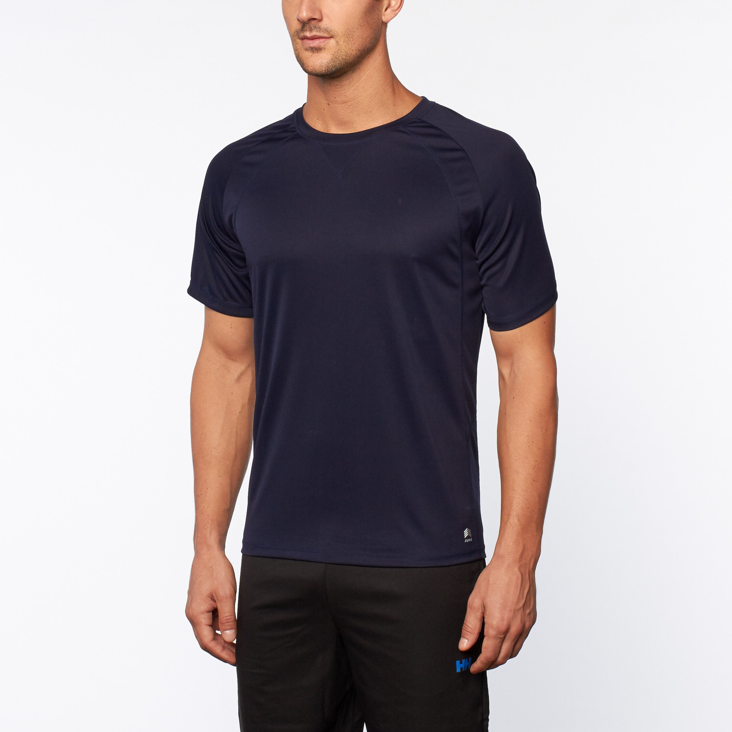 Specially engineered to keep your sweat from showing the Performance Mesh Crew Neck Tee is a technological wonder made to flatter. This reverse side of this fabric absorbs your sweat, keeping the exterior smooth and dry for the world to see. You'll be amazed at how breezy you look while exercising.