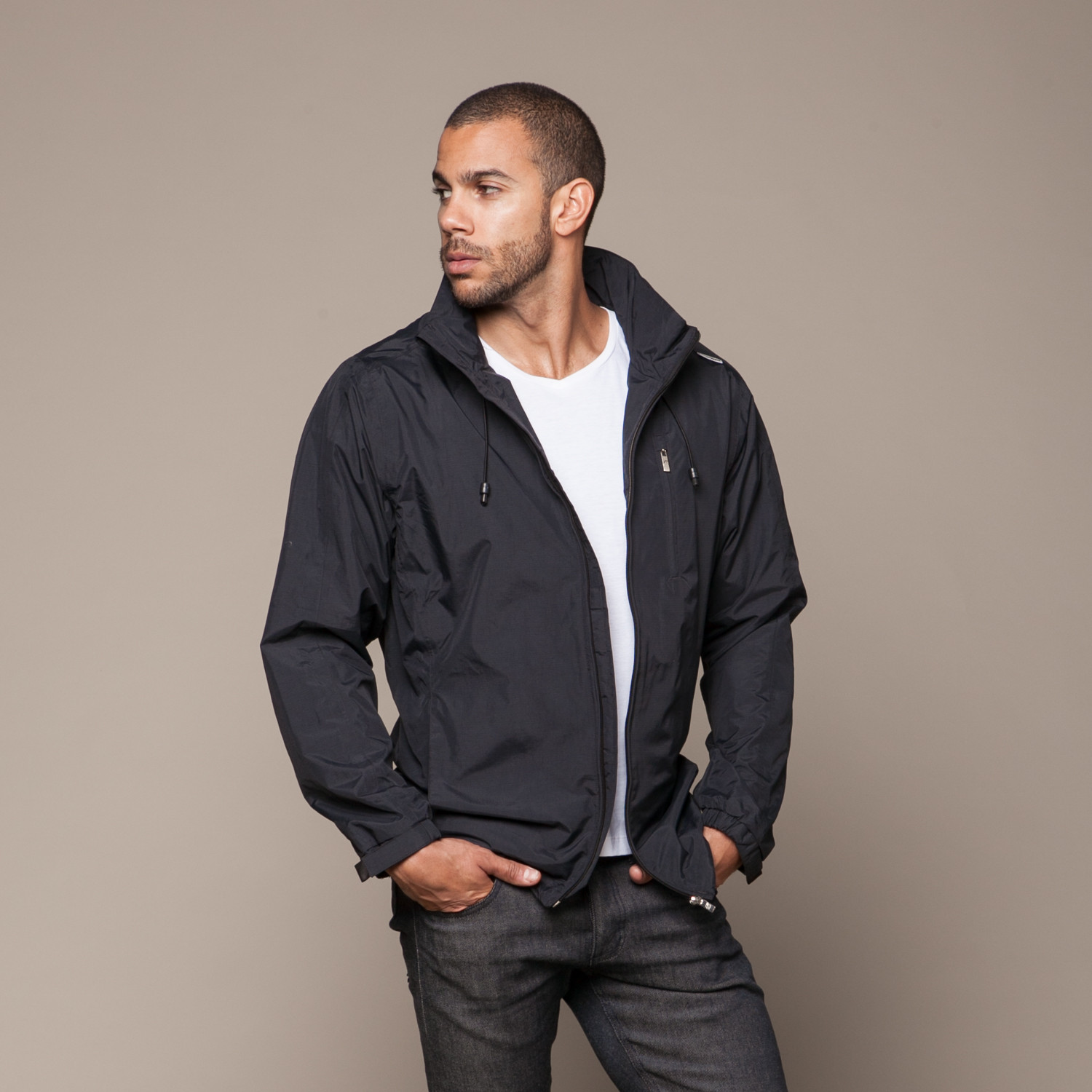 A classic stand-collar jacket with a sporty, technical twist, the Luc in Black is unlined, heat-sealed, and has a fixed hood in 100% nylon, making it waterproof so you can get caught in the rain. With no lining, it's lightweight enough to slip into your already-stuffed suitcase for a weekend away whitewater rafting or sipping espressos in Seattle.