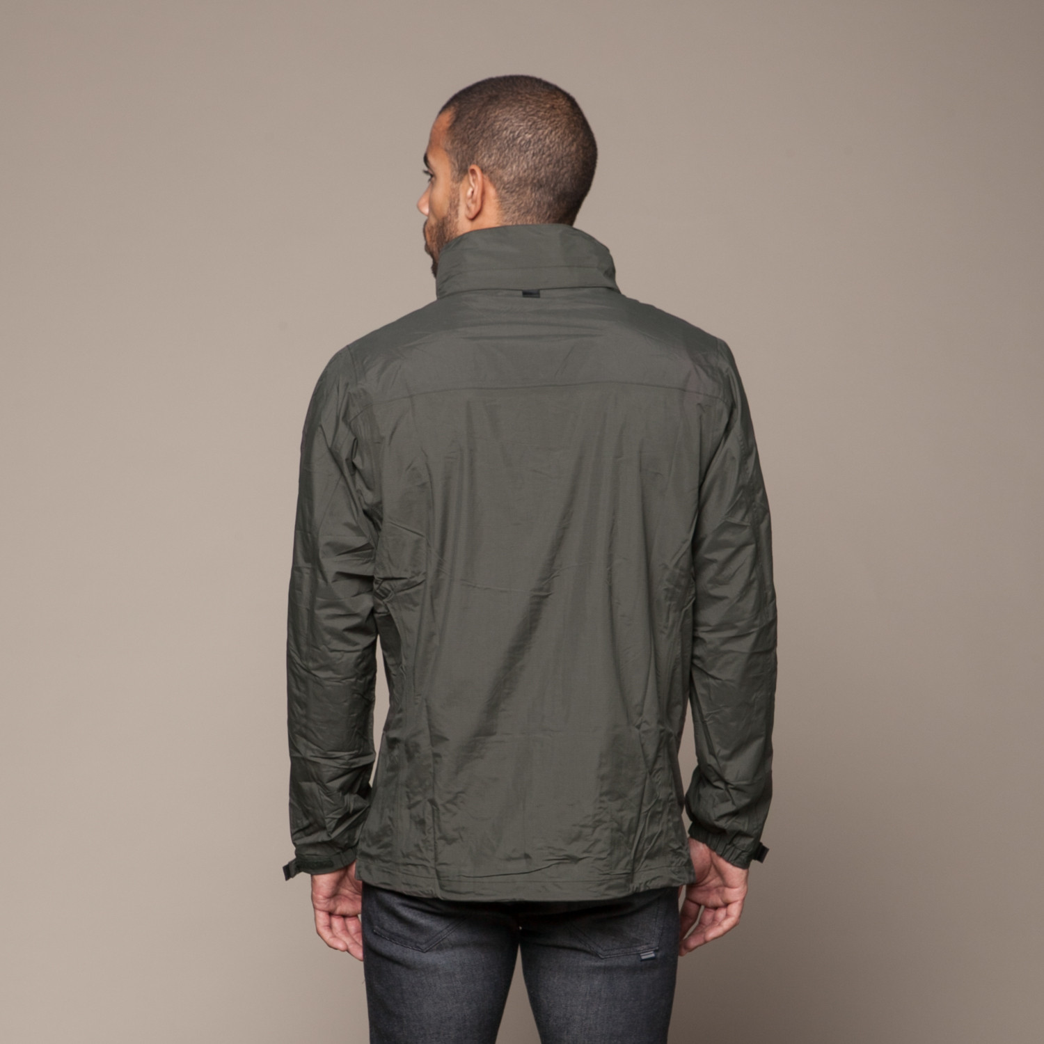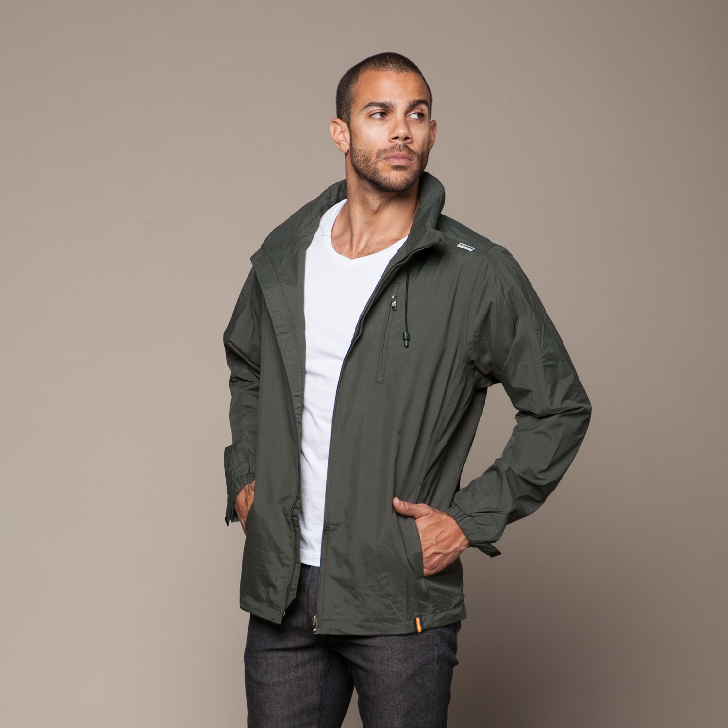 A classic stand-collar jacket with a sporty, technical twist, the Luc in Green is unlined, heat-sealed, and has a fixed hood in 100% nylon, making it waterproof so you can get caught in the rain. With no lining, it's lightweight enough to slip into your already-stuffed suitcase for a weekend away whitewater rafting or sipping espressos in Seattle.