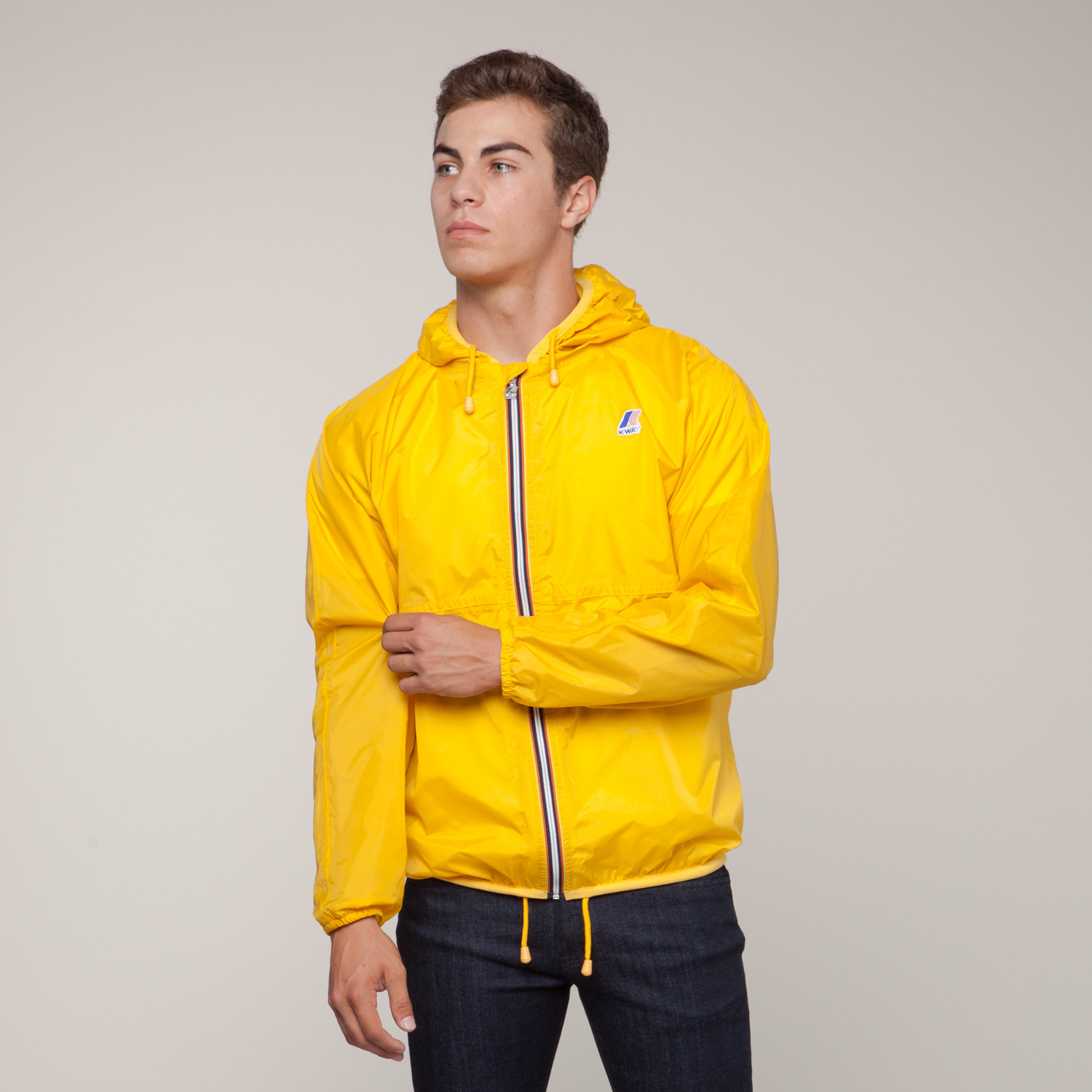 The Claude Klassic Jacket in Yellow is a woven men's jacket with a fixed hood in 100% nylon, making it water resistant so you can get caught in the rain. With no lining, it's lightweight enough to slip into your already-stuffed suitcase for a weekend away whitewater rafting or sipping espressos in Seattle.
