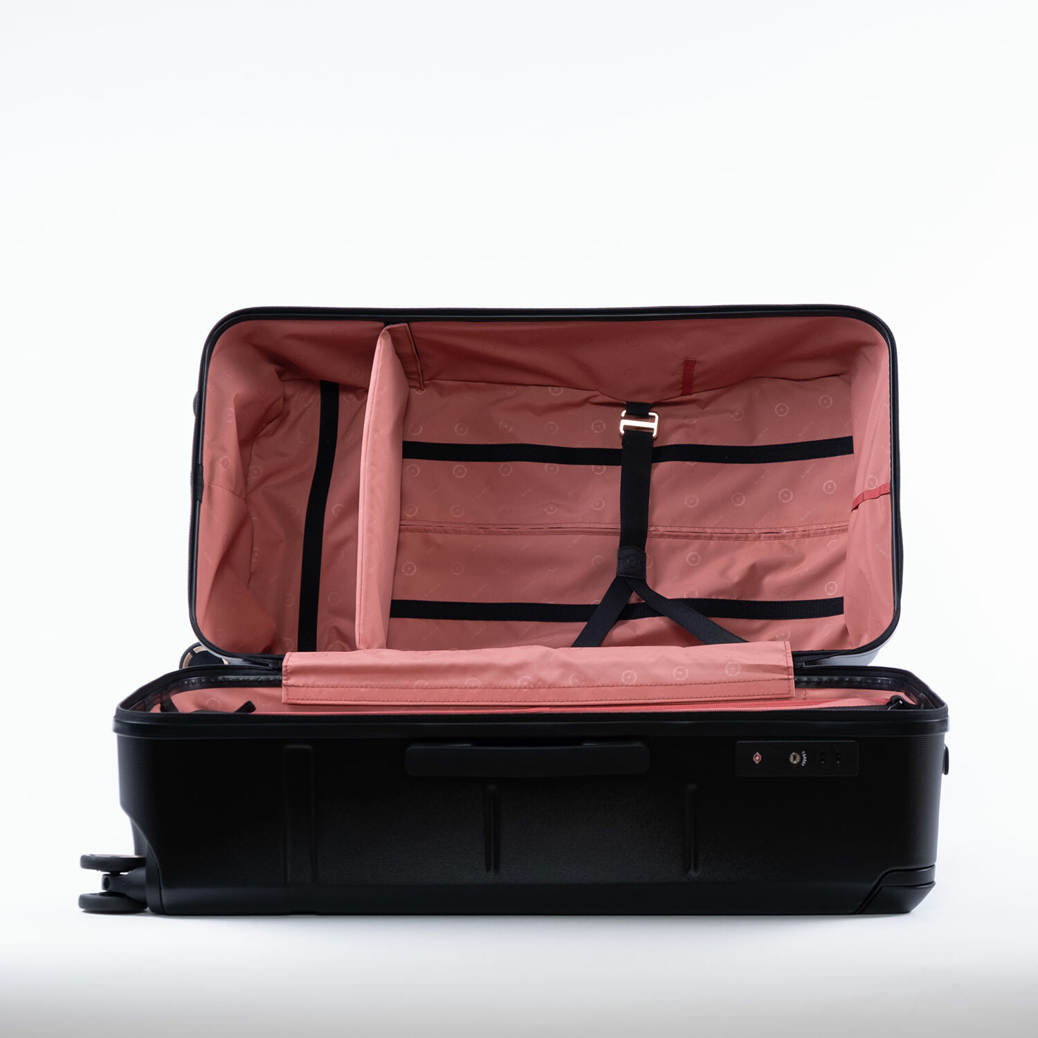 The new Kabuto Trunk Medium Stay Suitcase is an incredible check-in suitcase with an exclusive modular vertical interior, a removable front pocket with 4 ultra silent wheels. The removable front pocket fits your laptop up to 16". The ultra rigid shell is in Makrolon polycarbonate from BAYER. This new check-in suitcase is secured by a fingerprint lock opening system (TSA approved).