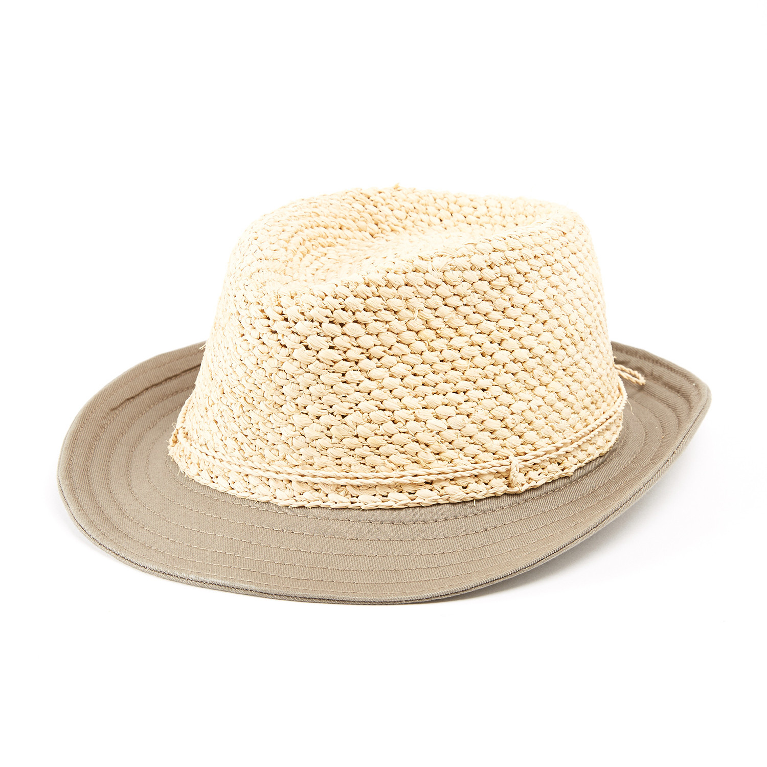 The Fedor is a men's fedora with a teardrop crown composed of fine raffia from Madagascar, skillfully crocheted into a sateen stitch style. A UPF 50+ rated and eco-friendly organic cotton brim offers a stylish juxtaposition, and will shield your eyes from the bright sun overhead. An absorbant and breathable inner band maintains a standard of comfort.