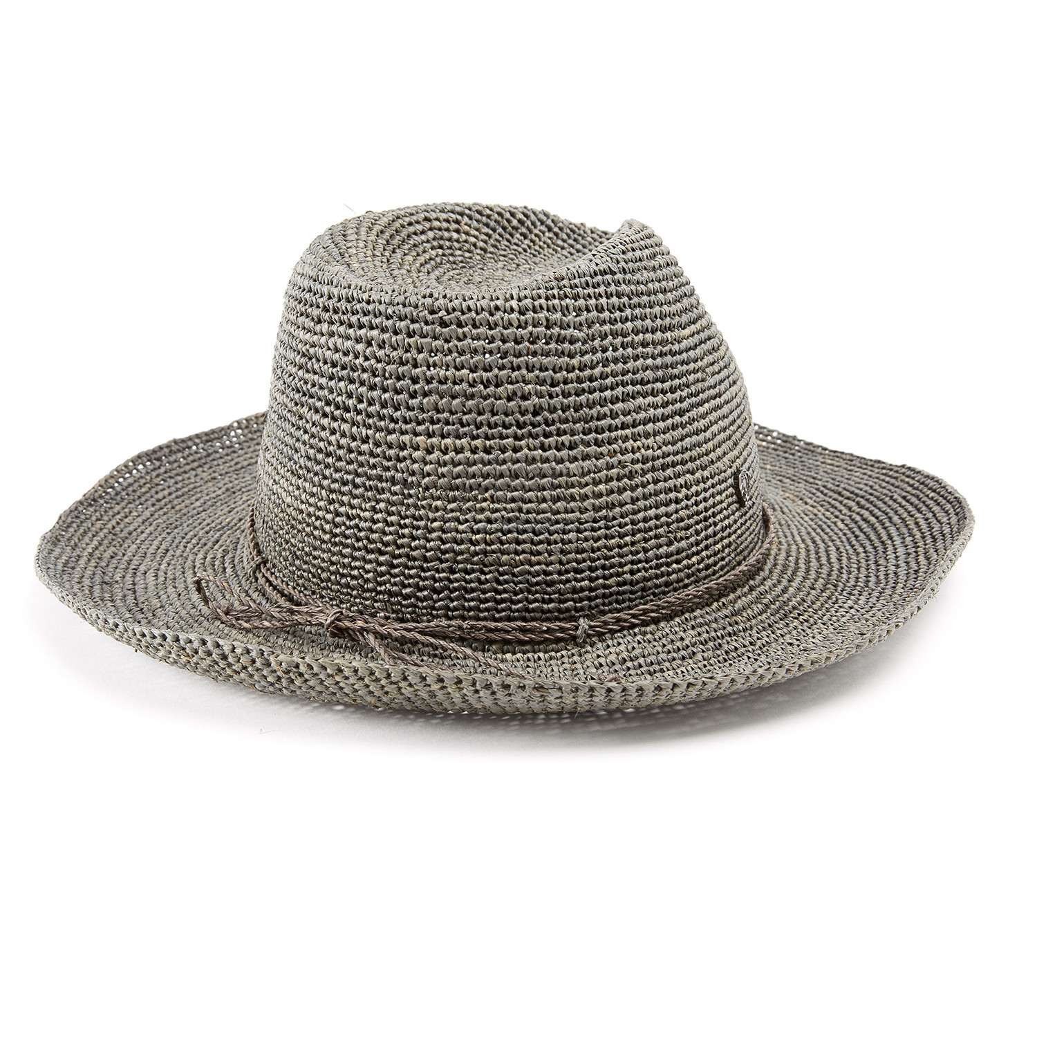 The Kaminski XY Kasos, a classic hand crochet raffia fedora, features functionality on a fashion topper for men. Rollable and packable, with a natural self raffia sizing string for customization, more than meets eye in the case of the Kasos. This stylish fedora's earthy crochet is a textural success on this travel-ready warm weather companion.