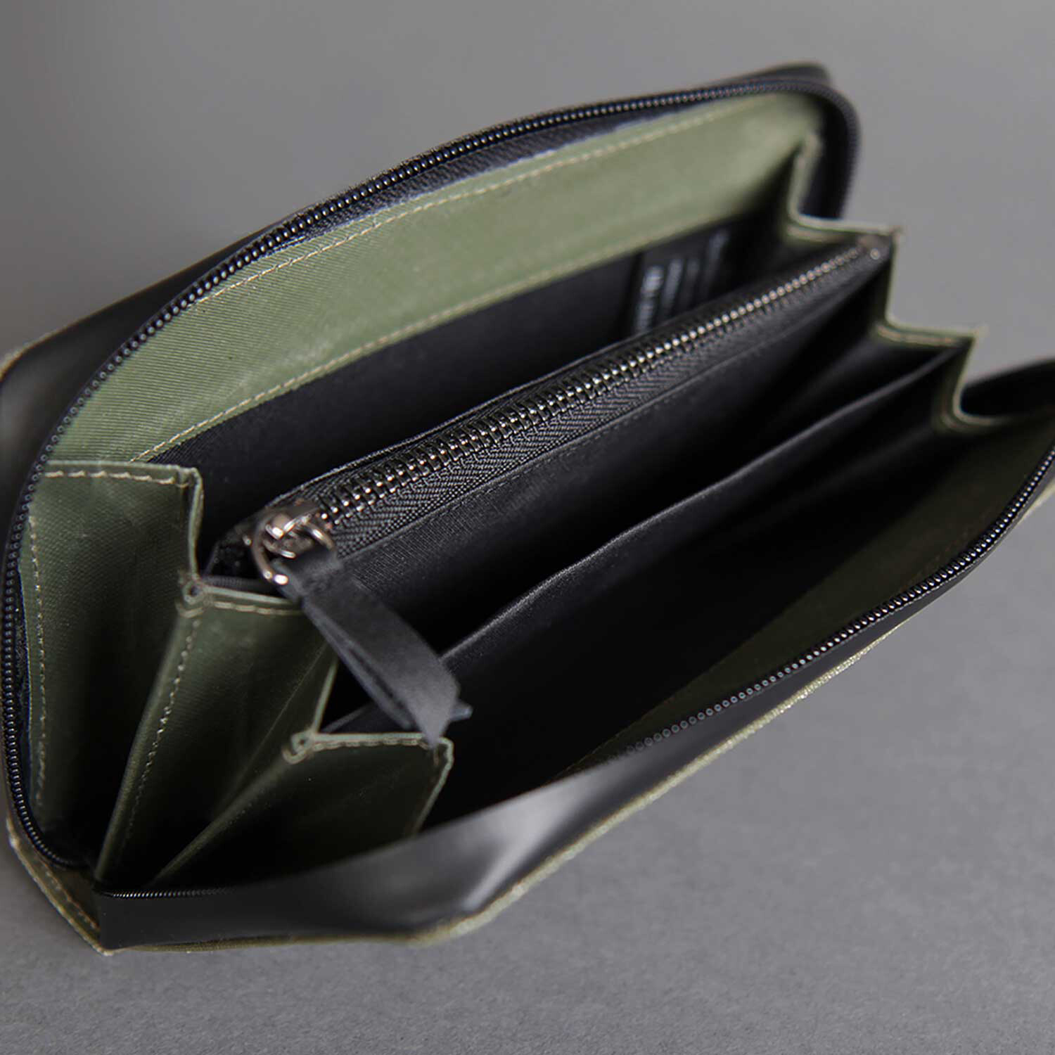 The Berlin Wallet is made from recycled US military tent covers. The design makes it easy to see the contents of your wallet at a glance. Store cards and business cards, as well as coins in the zipper pocket.