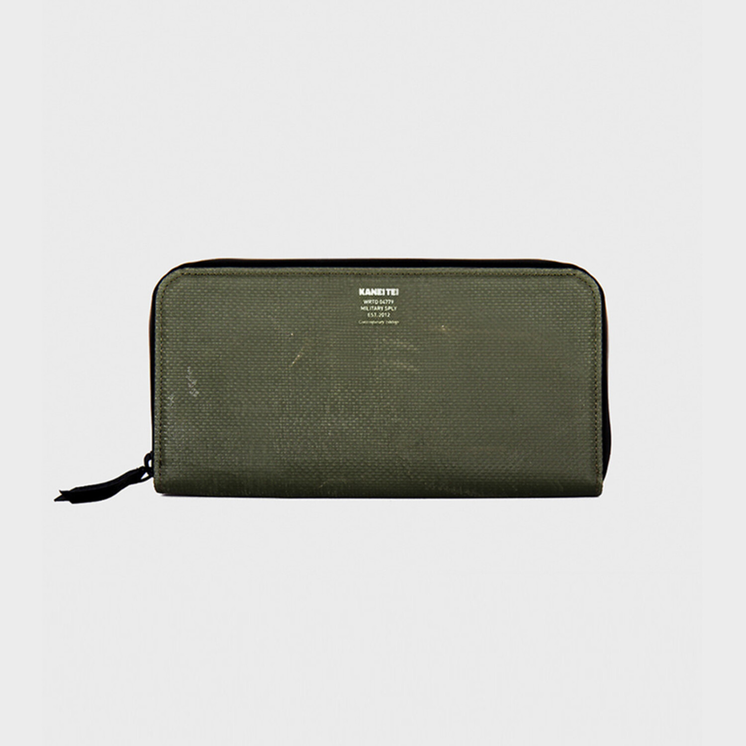 Wall is a wallet made from recycled vintage military tents. When opened, you can see everything inside, and it's big enough to fit any type of smartphone and even a passport. There is also a coin pocket and 8 card slots.