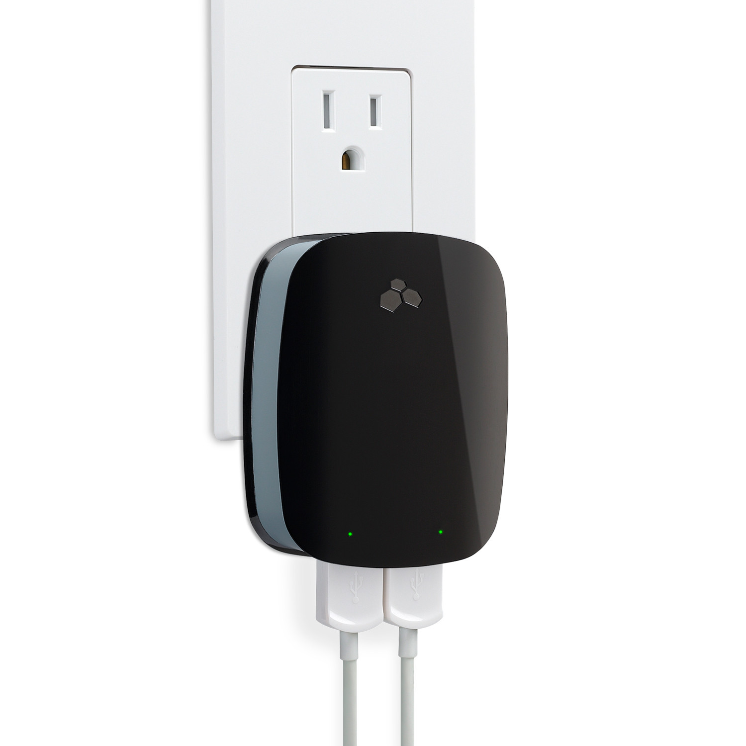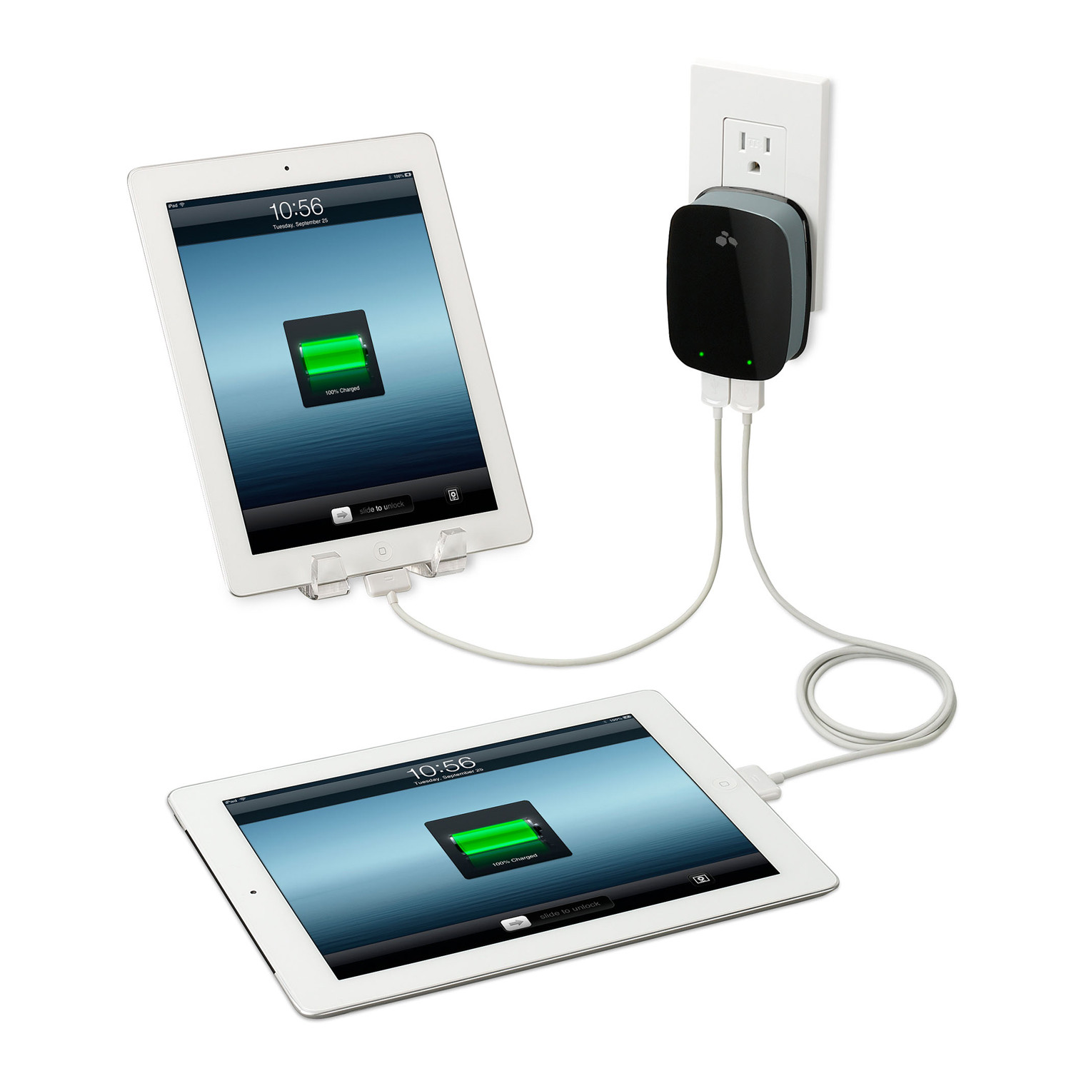 DoubleUp is an innovative, dual USB charging solution for your home or office. This product can charge two iPads simultaneously and it provides more power than two adapters for fast charging capability. LED indicators tell you when your products are fully juiced for hours of work and play.
