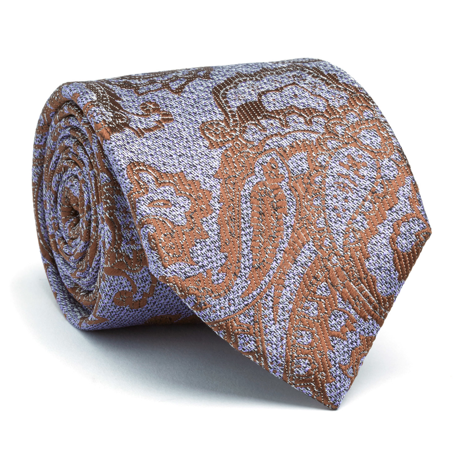 Hand Made Silk Tie // Dark Blue + Brown Paisey