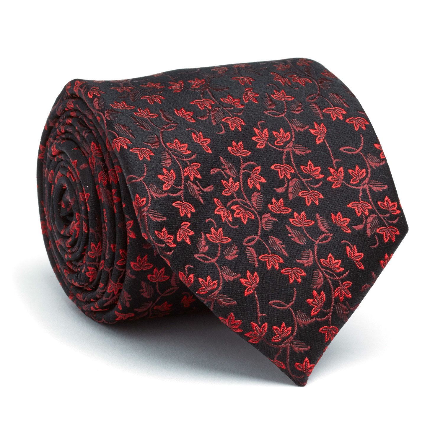 Hand Made Silk Tie // Onyx Black + Red Floral