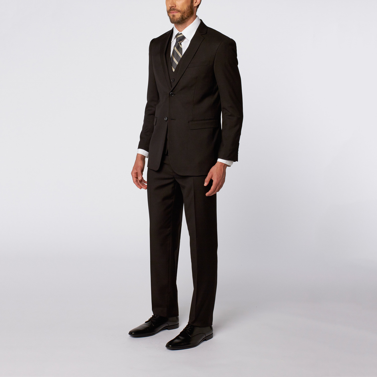 This Vested Slim-Fit Suit is all you'll need for your work wardrobe, and will provide you with the separate blazer and pant to supplement the rest of your look. Done in a soft fabric blend with color-matched buttons, it's a fashionable power-play all its own.