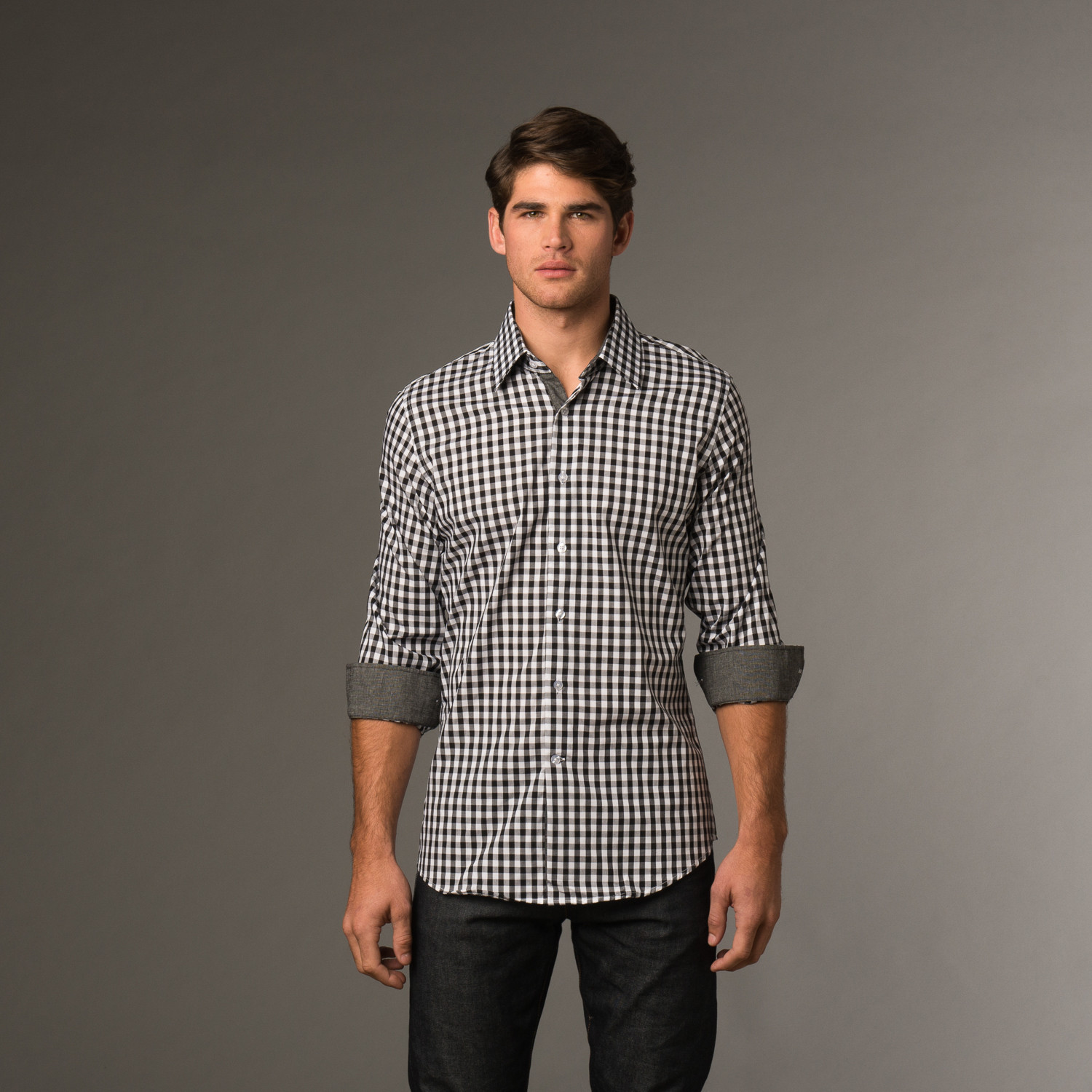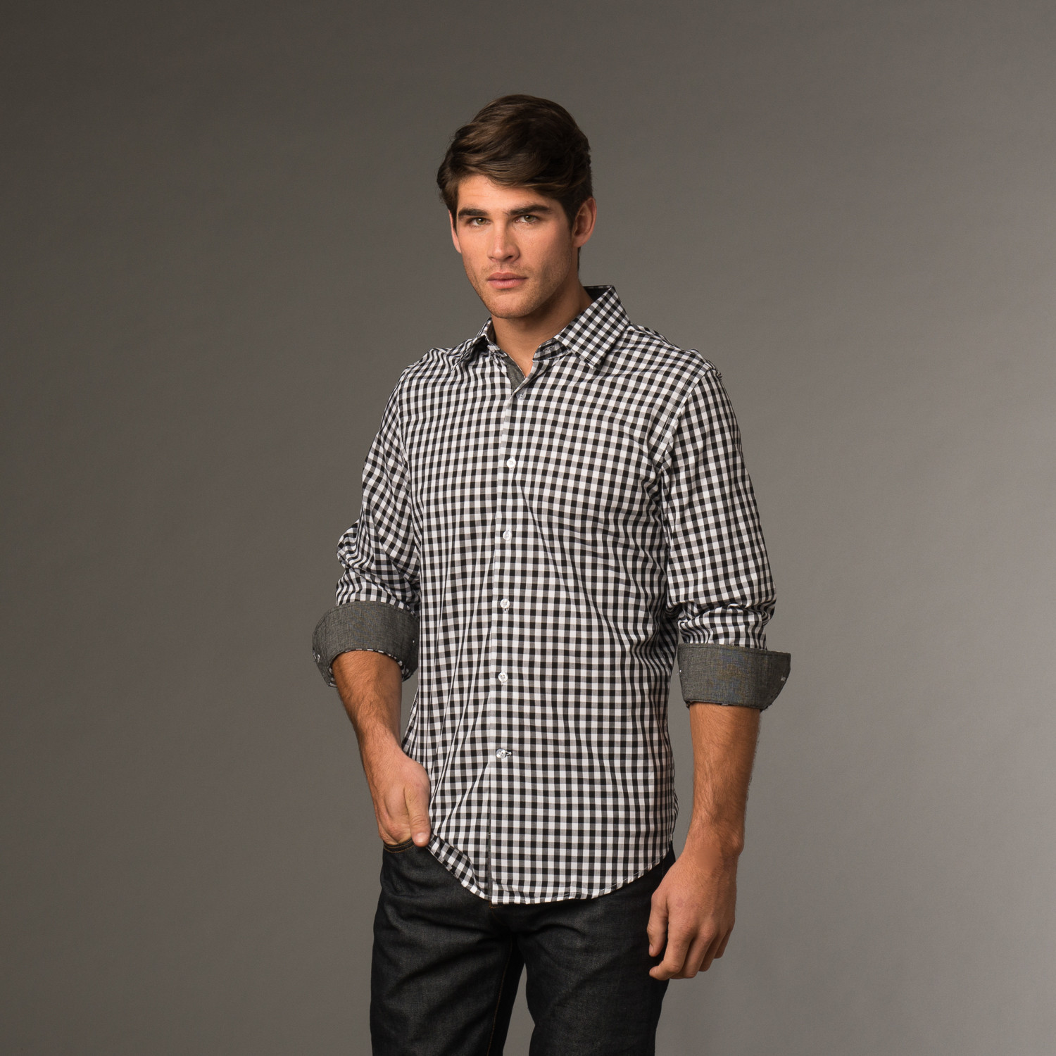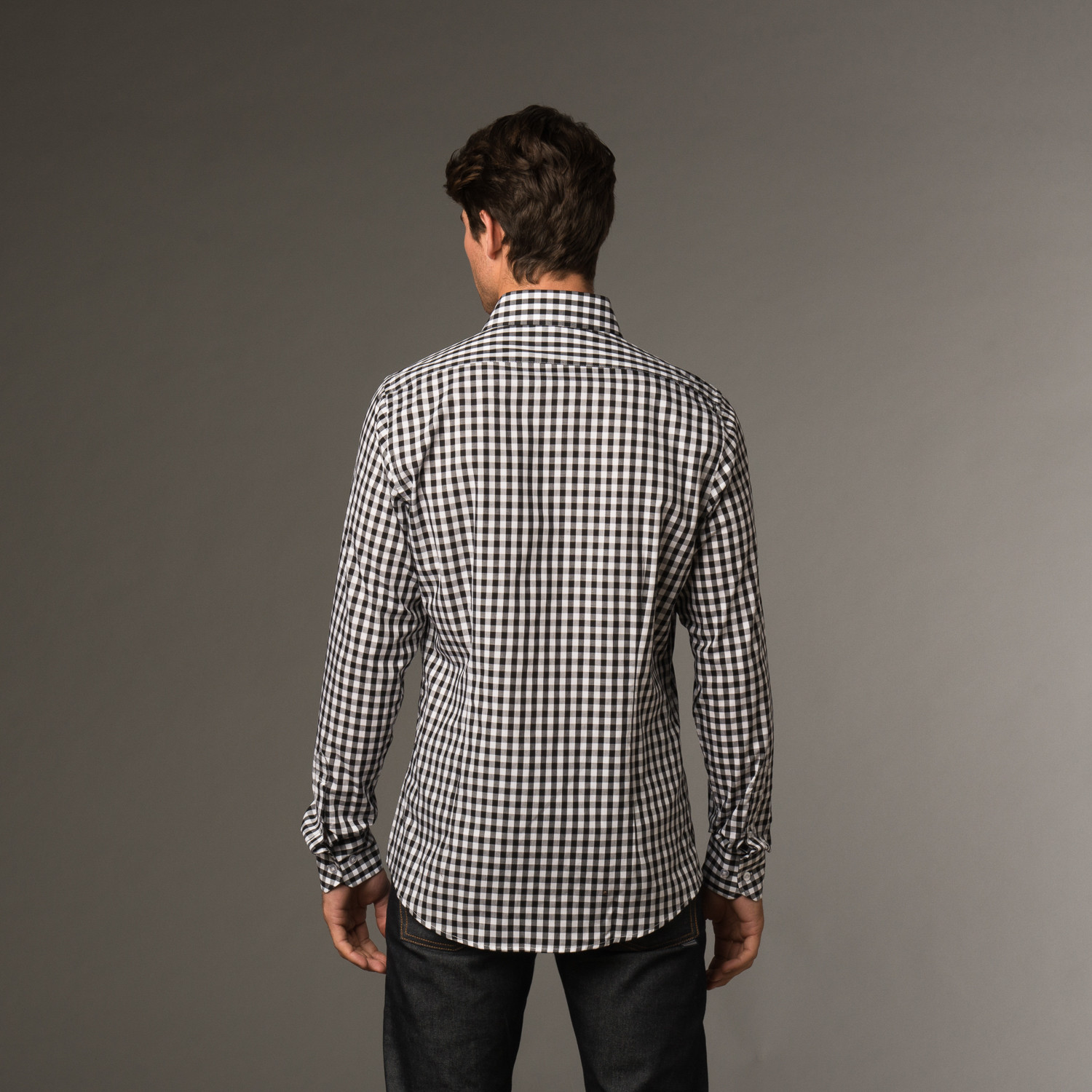 This gorgeous, black and white check fitted button up has contrast chambray lining on the inner cuffs, inner collar, and button plaque. Darts at the waist, a spread collar, and a curved hem give you that classic, handsome look, and with this Fall-ready, work-appropriate wardrobe addition, you'll be covered no matter what the occasion.