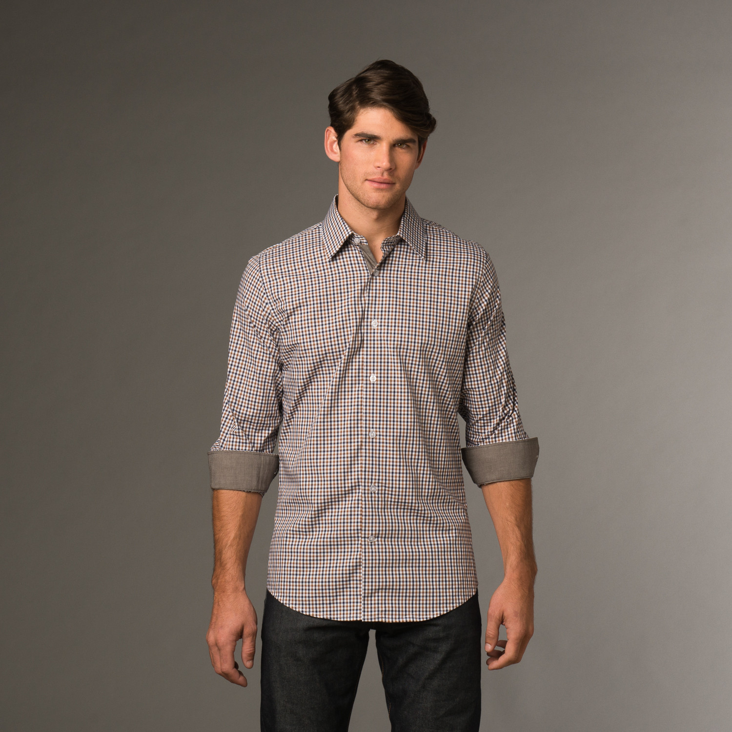 Slim Fit Button Up // Brown & Blue Check