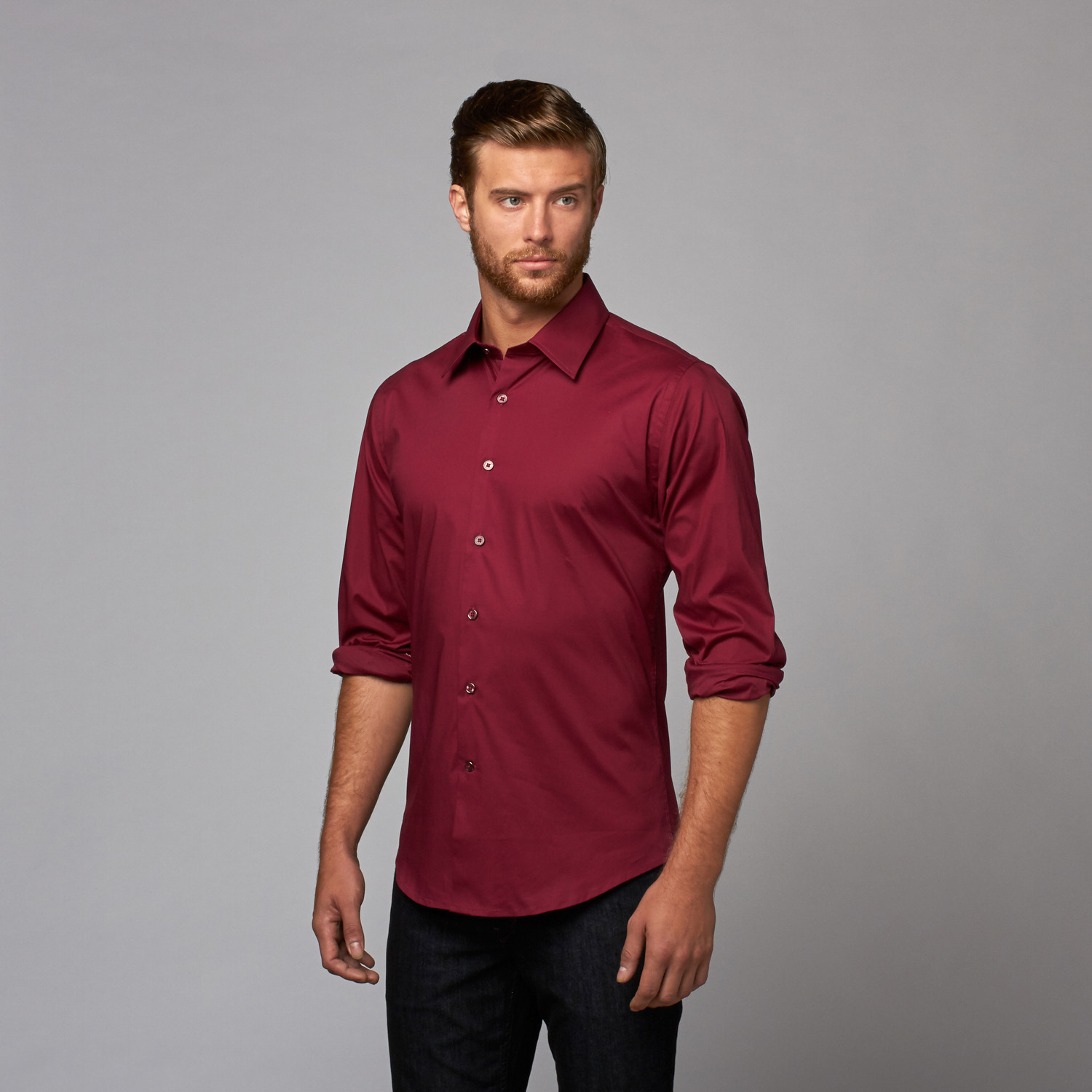Slim Fit Button Up Shirt // Burgandy