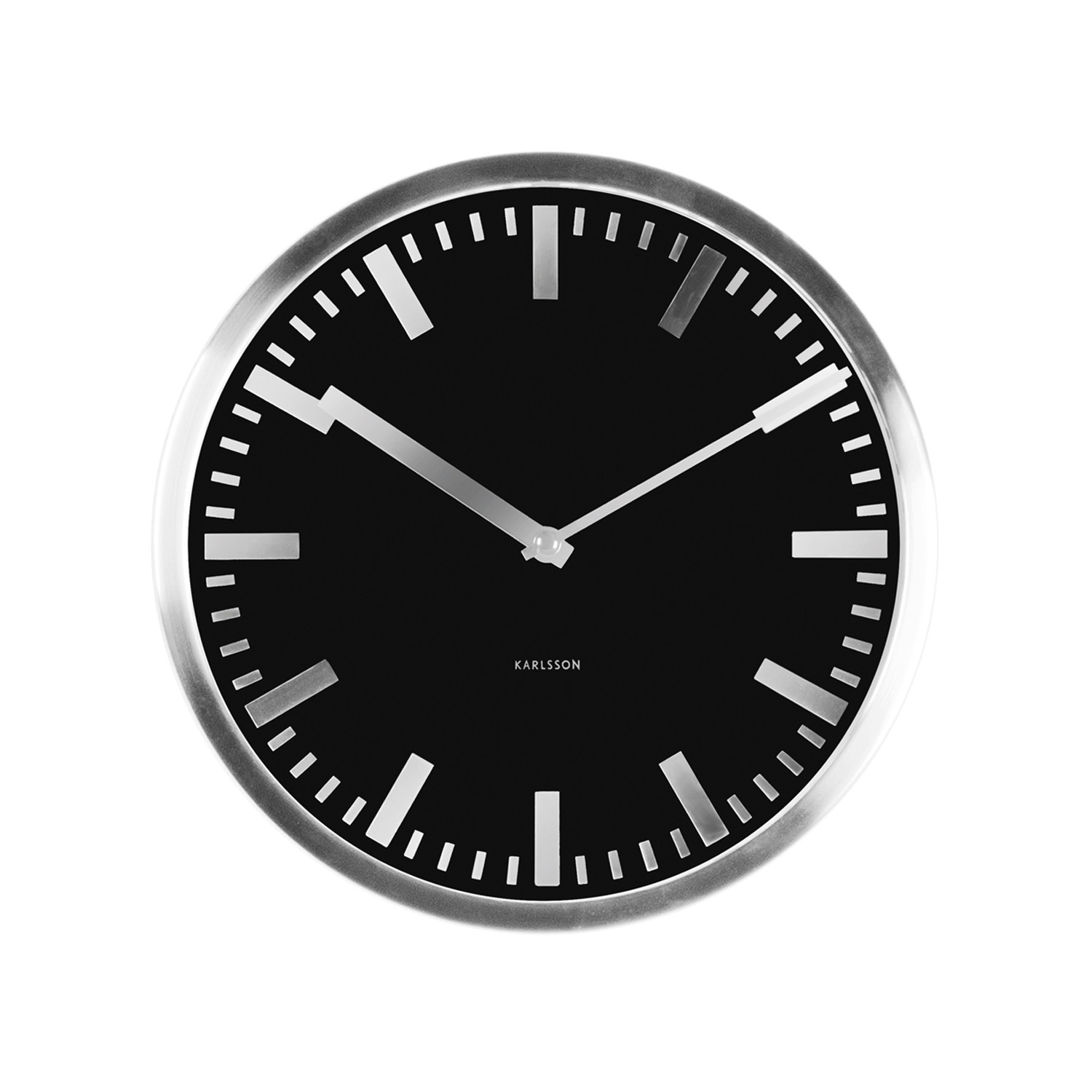 No numbers necessary. This sleek wall clock has polished silver slashes on every hour, as well as matching hour and minute hands for viewing convenience. Minimal and elegant, Mirror Station will add a sophisticated element in any room.