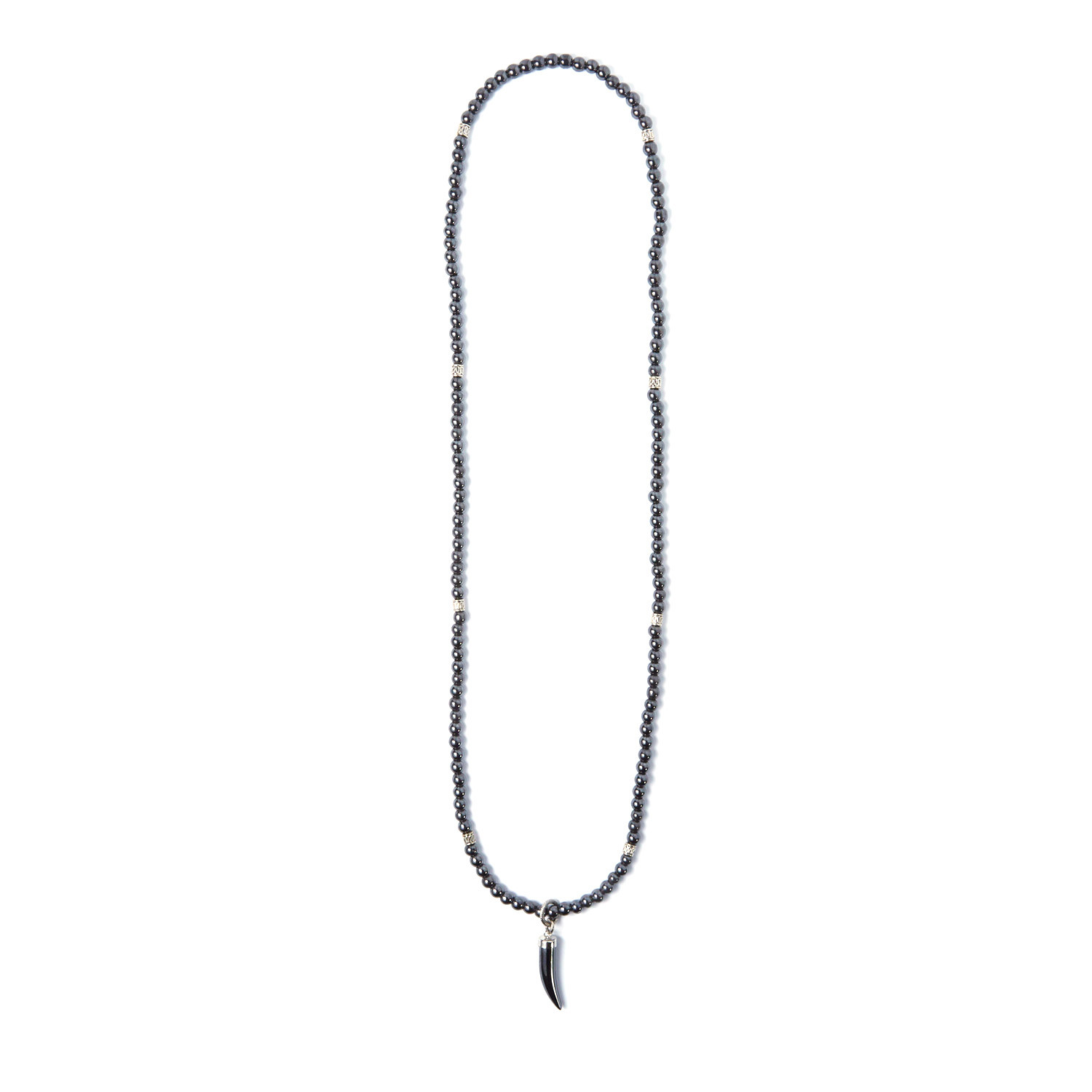 6mm Natural Black Hematite, 7x33mm 18 K Plated Natural Hematite Horn | Tusk, Antiqued Silver Bali Rondelles
