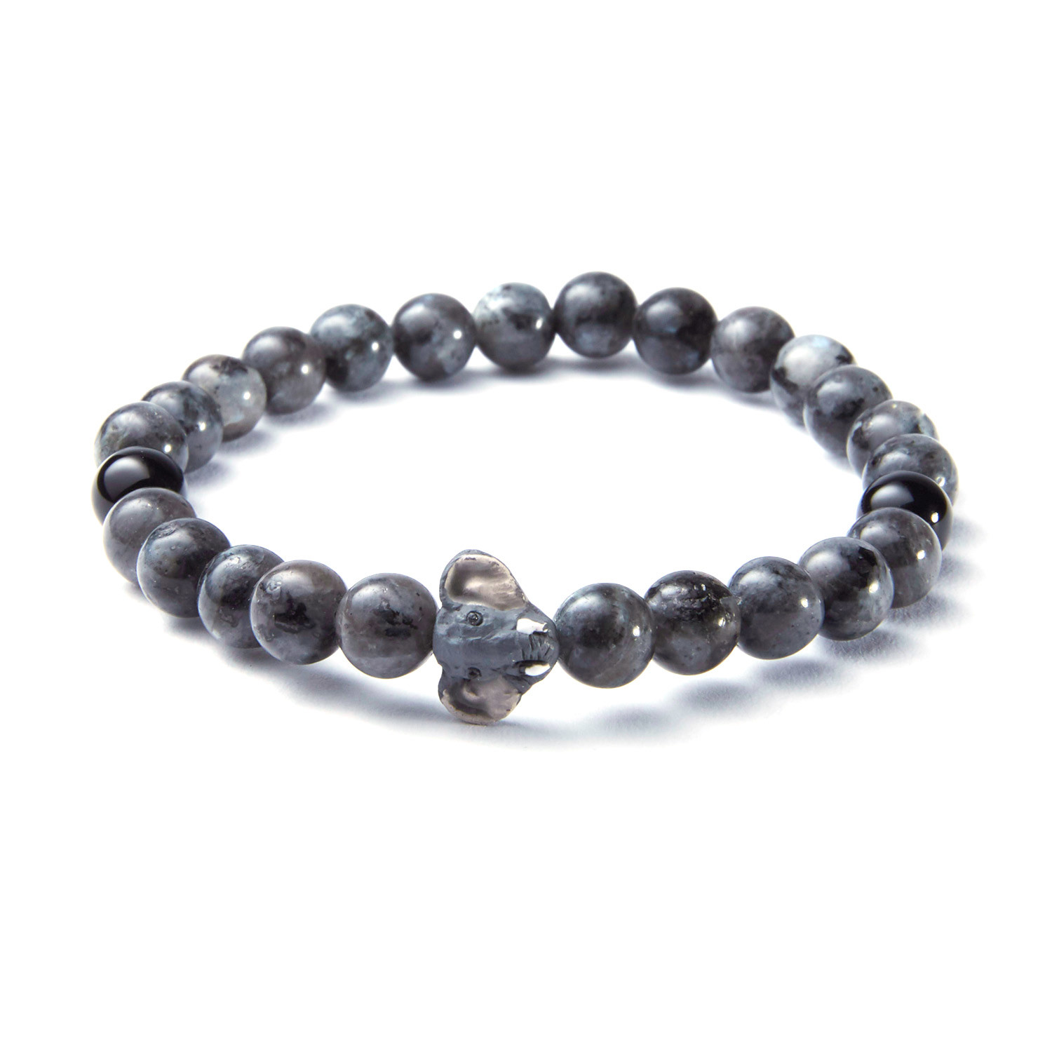 Labradorite + Onyx // Peruvian Ceramic Elephant Bracelet