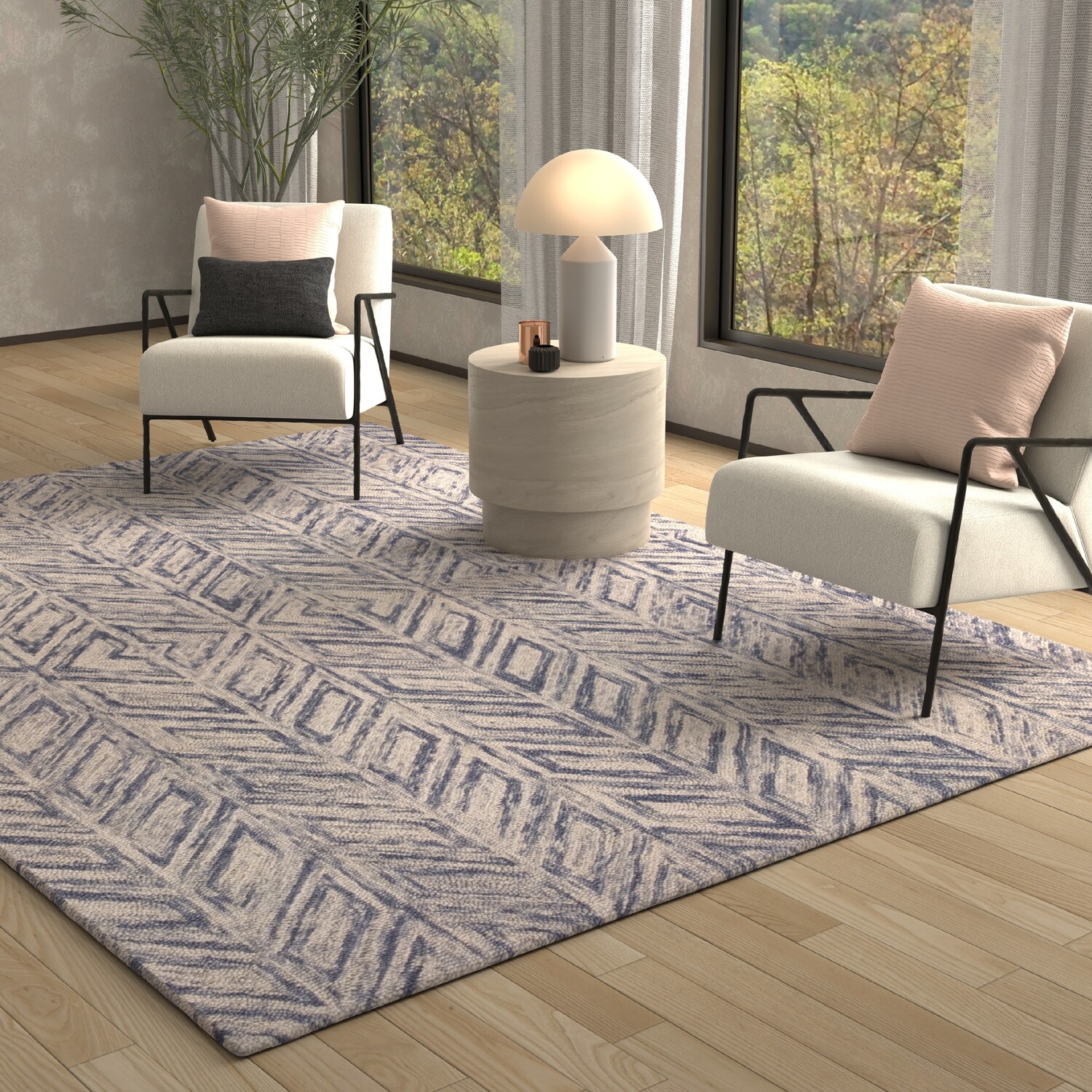 Gramercy Heather Herringbone Hand Tufted Area Rug // Blue
