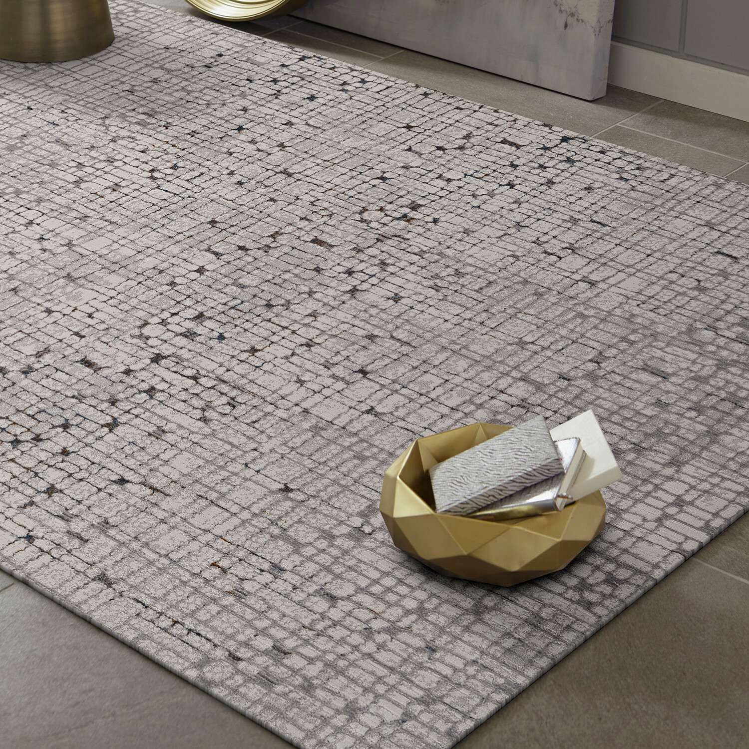 Inspire is a collection of trendy, transitional, and traditional machine woven rugs with metallic highlights throughout.