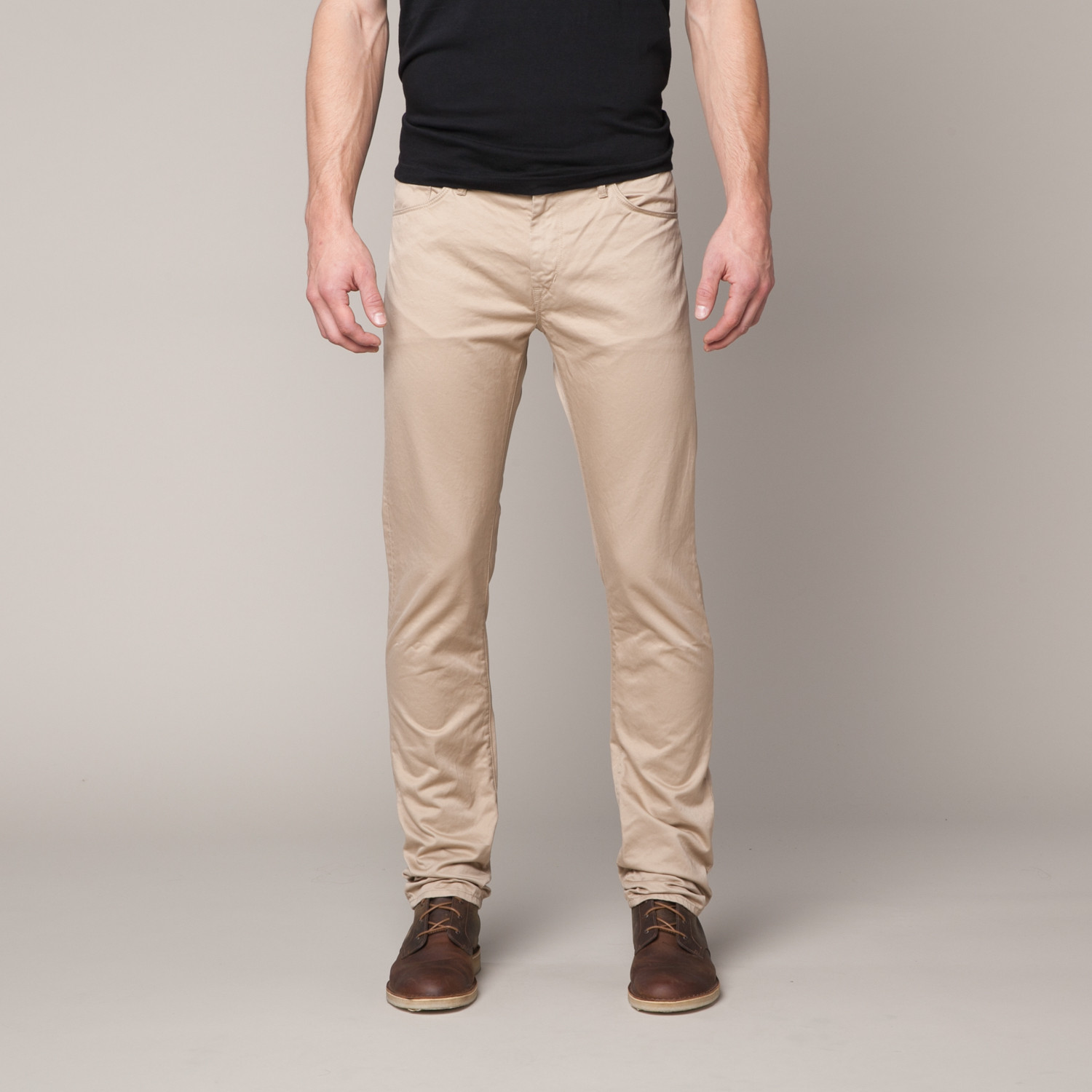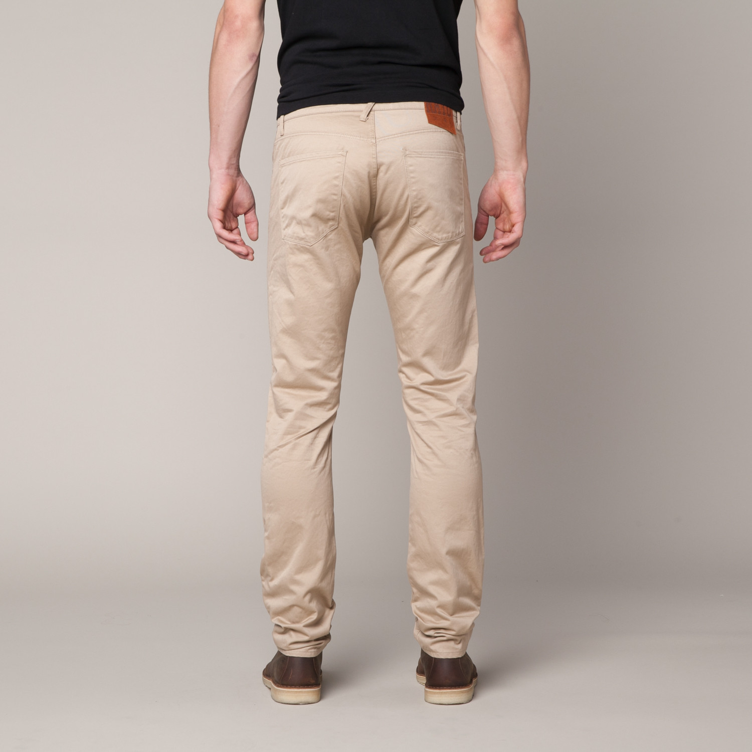 These Slim Desert Jeans by KATO showcase the best in denim innovation. Done in classic 5-pocket style with contrast orange stitching, a specialty waistband patch, and a zip fly, the true mark of its style is the workwear-influenced khaki twill, which is comfy, utilitarian, and supremely stylish.