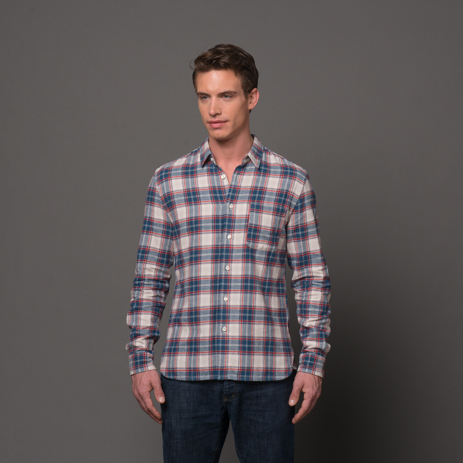 Deceptively simple, but replete with luxury fabrics, KATO’s line of plaid shirts showcases a riveting attention to detail, including intricate stitching, vintage trims, and creative labels that true vintage aficionados will adore. This Slim French Seam Long Sleeve Shirt in Peach Plaid is a perfect fit for fall, in a bright plaid that you’ll want to touch.