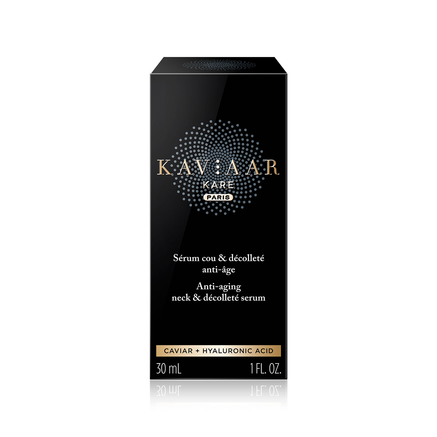 The KAVIAAR KARE anti-ageing neck and neckline serum is an exceptional anti-aging treatment made in France that offers multiple benefits, including hydration, anti-aging action and radiant skin. Its formula, composed of 98% ingredients of natural origin, is enriched with caviar extract and hyaluronic acid. Caviar extract is renowned for being rich in omega-3, proteins, lipids, fatty acids, trace elements and vitamins, all of which are easily absorbed by the skin. Hyaluronic acid is recognized for its wide range of benefits including hydration, regeneration and plumping effect.