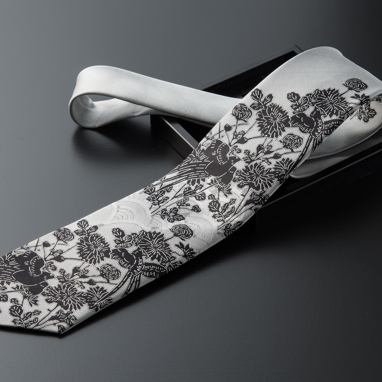 Each refined necktie from Keshiki is hand-woven in Nishijin, Kyoto, a place renowned for high quality textiles and kimonos. They draw from traditional Japanese patterns and Ukiyo-e paintings to create designs that are truly unique and sophisticated.