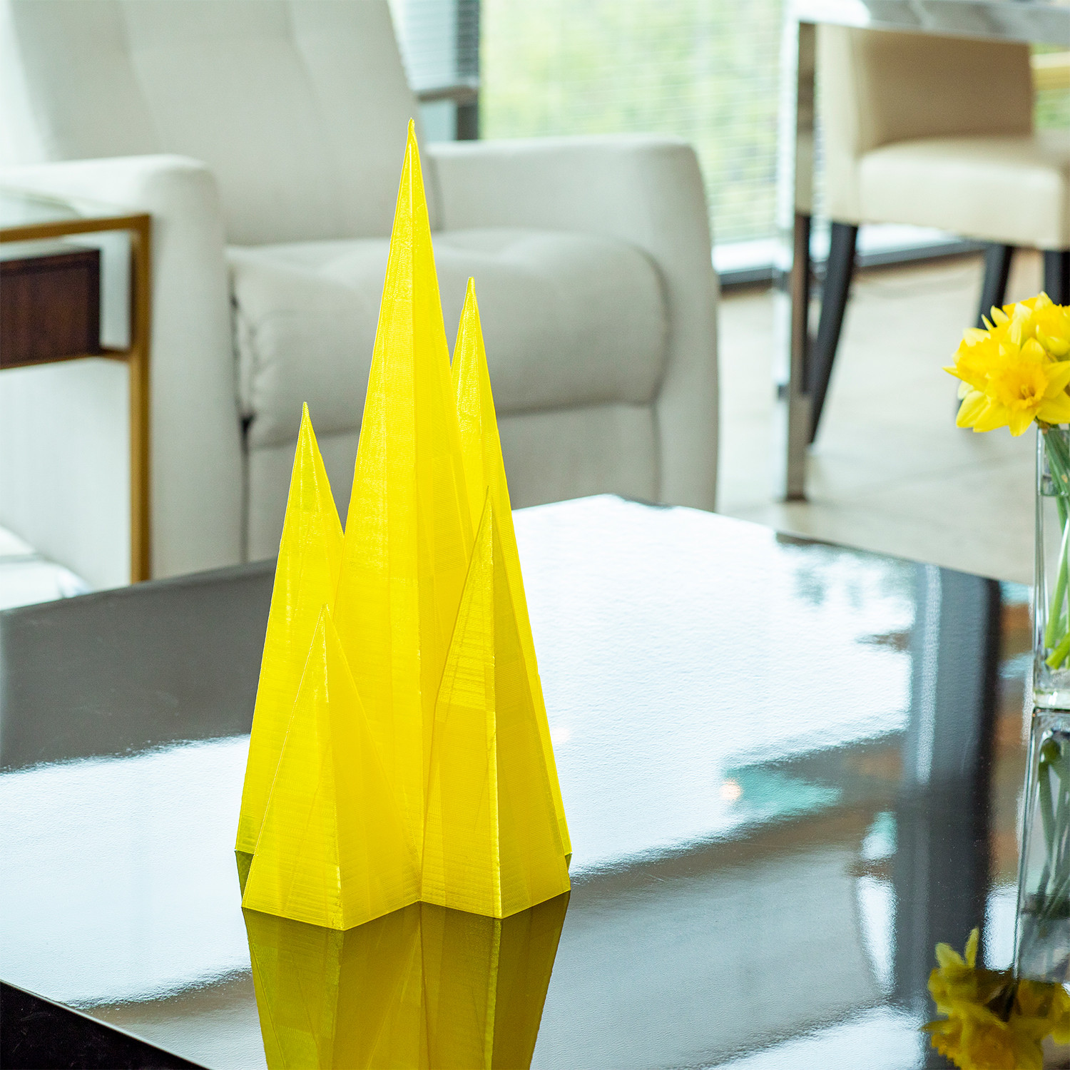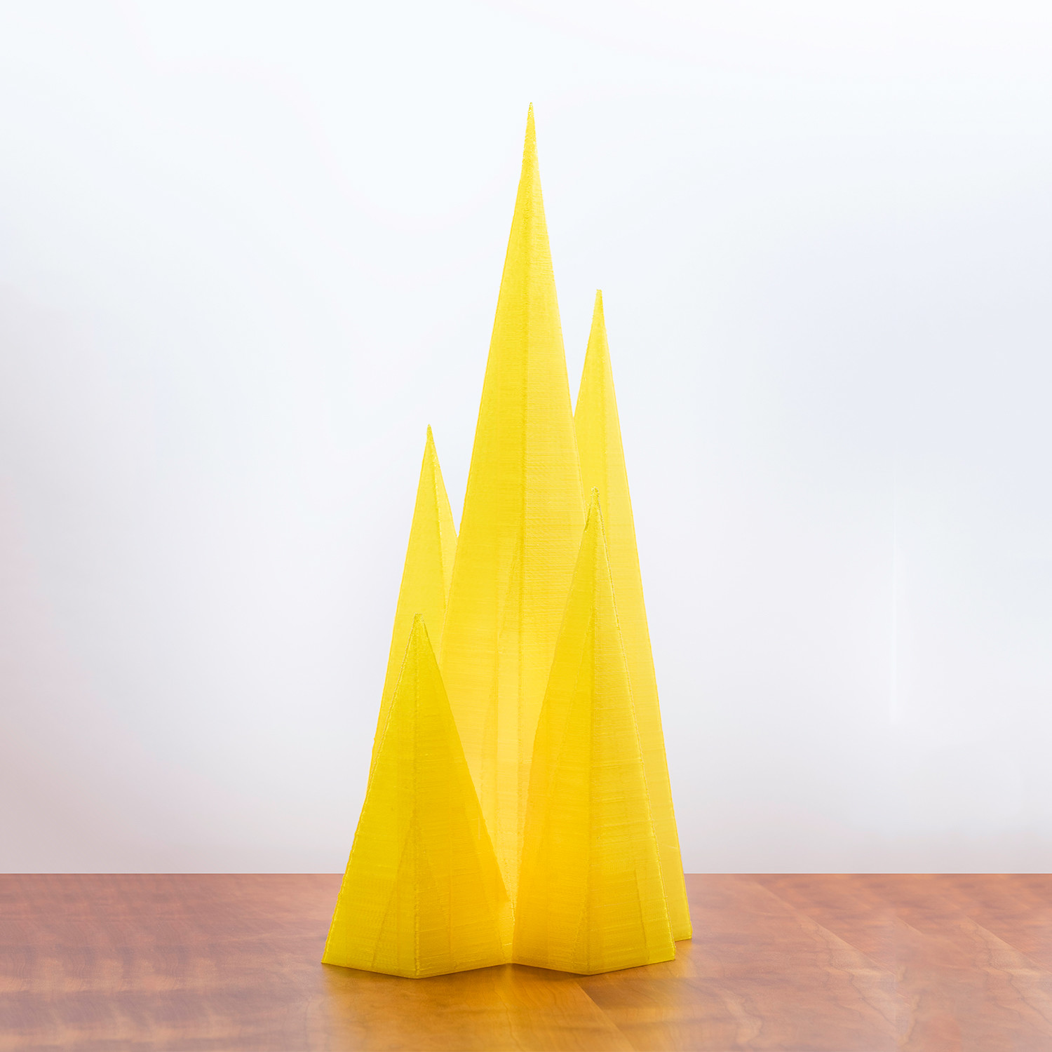 Starscraper is a 3D-printed sculpture individually printed on an 8-foot-tall 3D printer. Its bold geometric form plays with the light that glows through it. Part of Kevin Caron's Progeny series, this piece was made especially for Touch of Modern.
