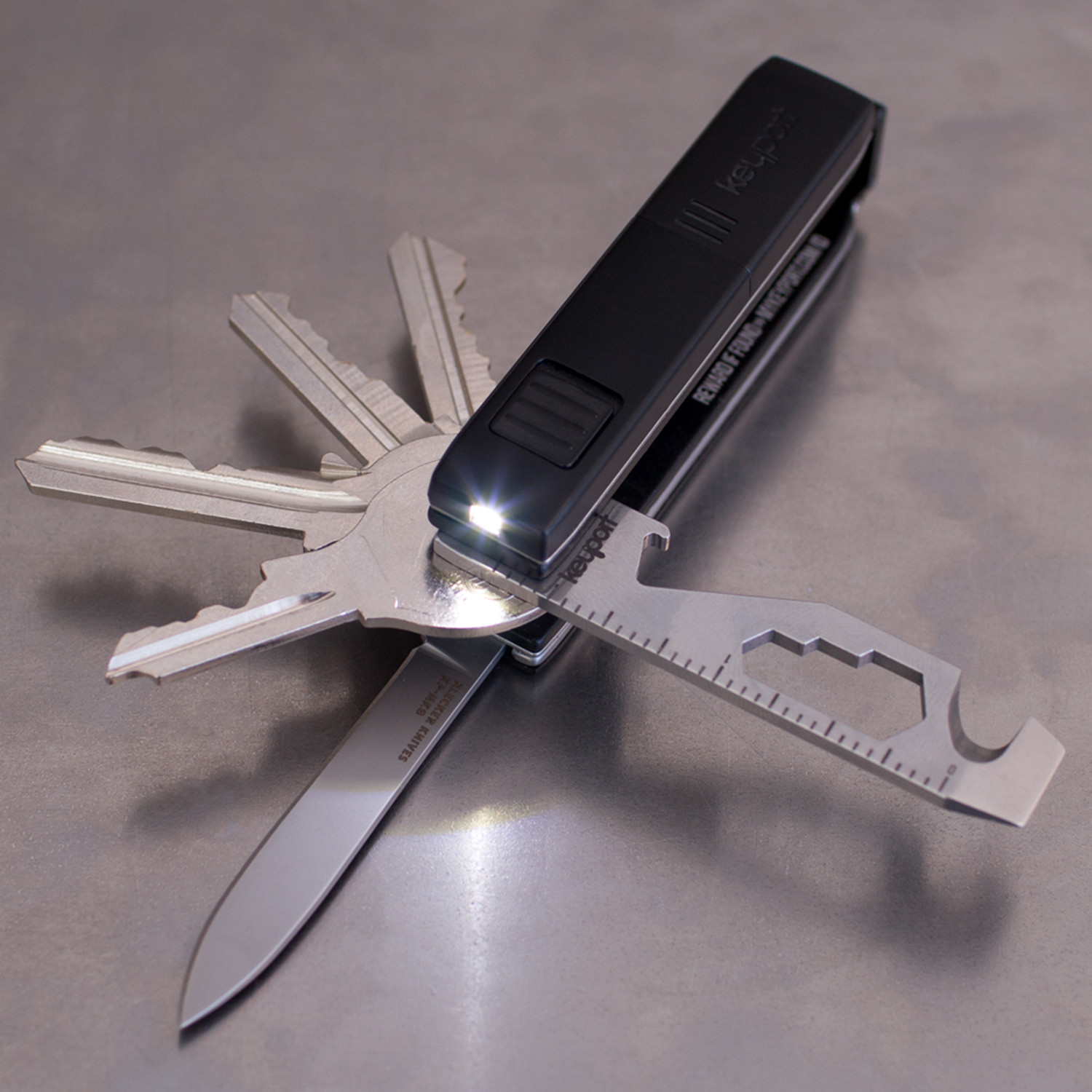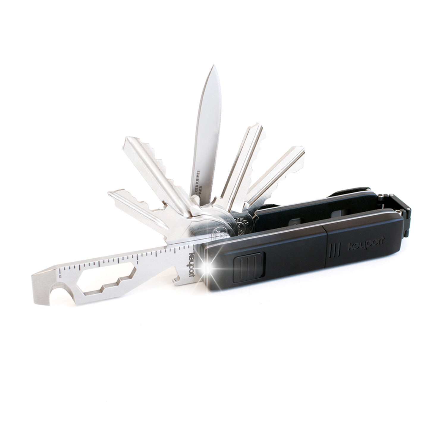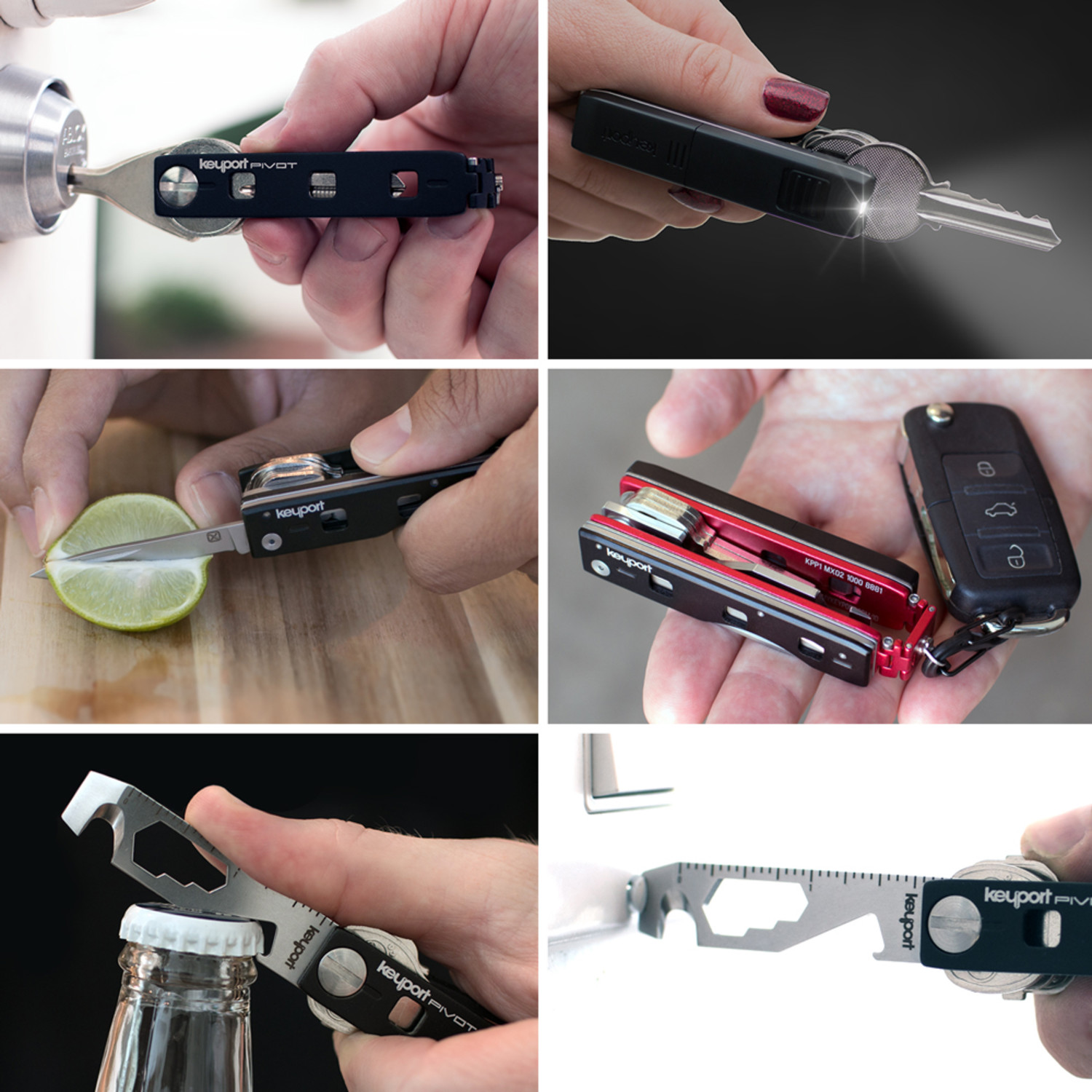 Part key holder, part Swiss Army knife, part lost and found, the KEYPORT® Pivot is an all-metal, modular multi-tool that holds your existing keys, tool inserts like pens and USB drives, and a range of available add-ons like BLE locators, blades, and flashlights. It uses a unique locking mechanism that provides the perfect amount of tension to ensure smooth operation every time, with no risk of loosening or jingling.