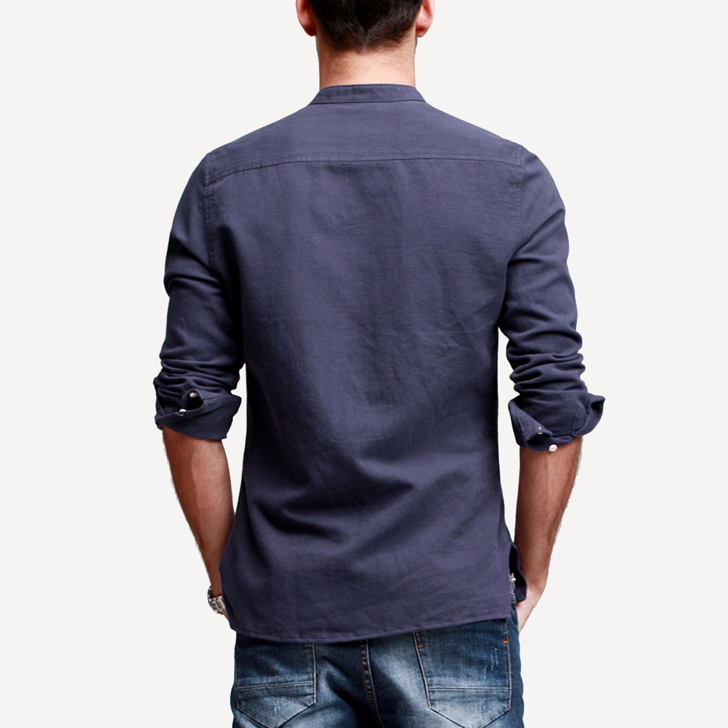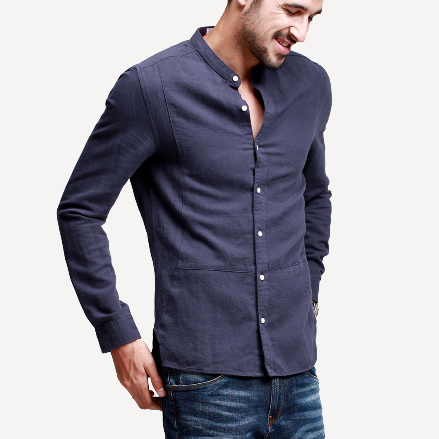 Kuegou shirting epitomize trim tailoring and restrained, minimalist design. With modern details like the mandarin collar, the Moa Panel Shirt will mark you as a tastemaker whether you're at the office or out on the town.
