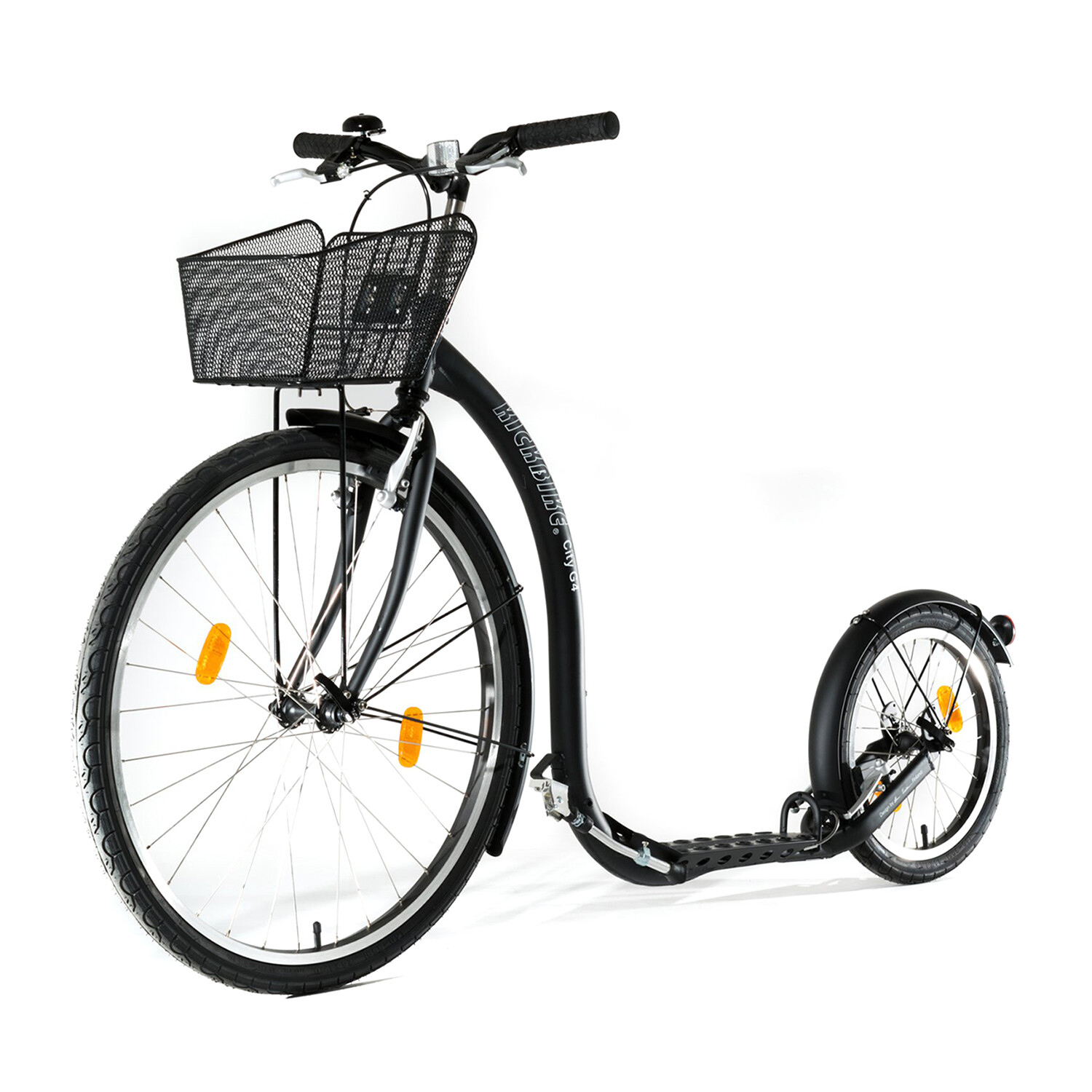 The Kickbike City G4 is a fantastic third option to running and cycling. The adult kick scooter is perfect for cross-training as it works all the same muscles as running and biking combined, leaving you loose and stretched, not stiff and sore. Made for a smooth and fast ride, the City G4 Kickbike has a perfectly vertical upright riding position that is very natural and comfortable, and handlebars that easily raise and lower. The metal mesh basket adds to the practical convenience of the kickbike. Extremely sturdy, deceptively fast, uber stylish, and very lightweight, the City G4 Kickbike is perfect for getting your daily dose of exercise even as you cruise around town.
