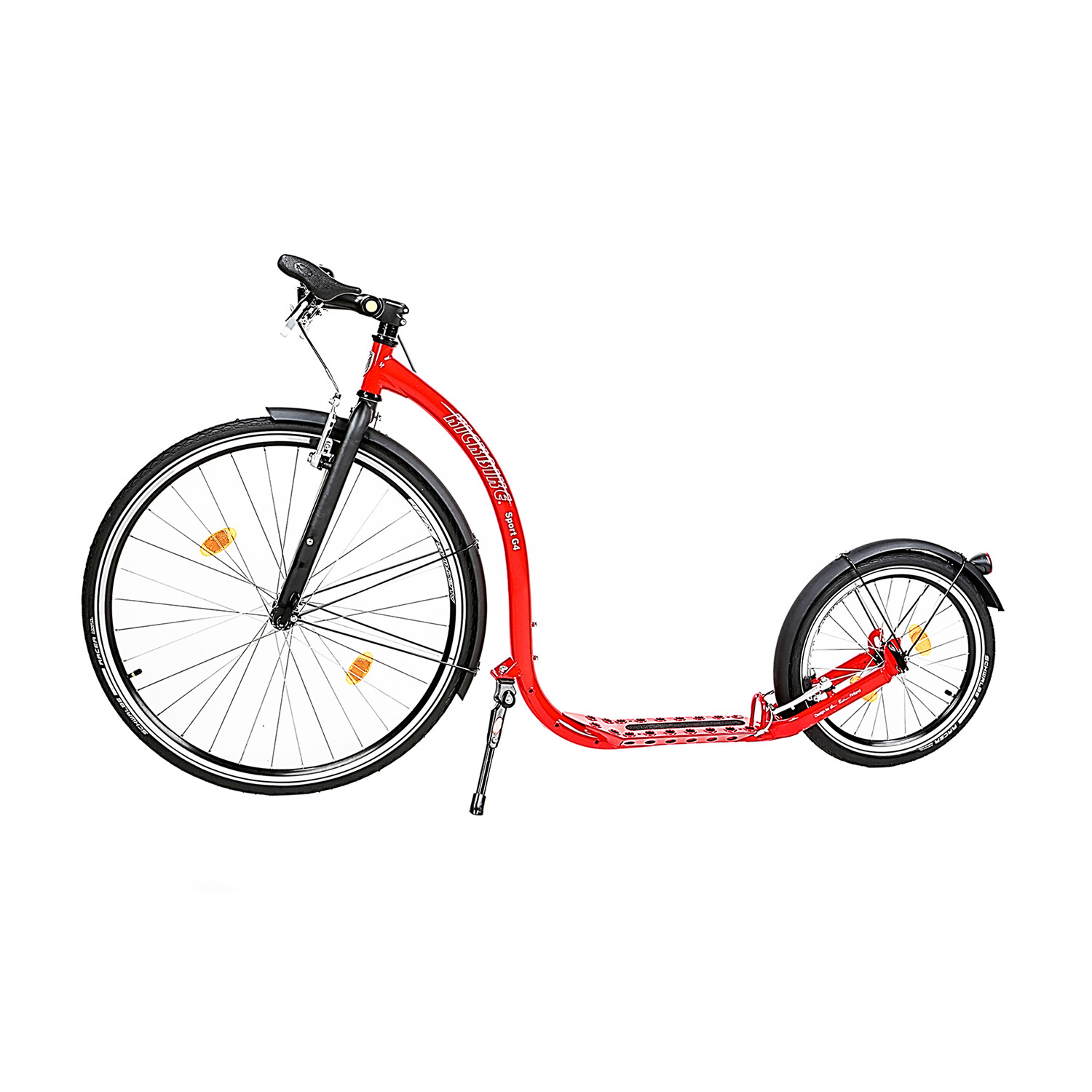 The Kickbike Sport G4 is a fantastic third option to running and cycling. The adult kick scooter is perfect for cross-training as it works all the same muscles as running and biking combined, leaving you loose and stretched, not stiff and sore. Made for a smooth and fast ride, the G4 Kickbike has adjustable handlebars to let you focus on different muscle groups. The hybrid tires are smooth on top for speed, and knobby on the sides for control and traction through turns and loose footing. Easy to assemble and hassle-free to maintain, the kickbike takes care of your fitness routine even as you glide through the city in style.