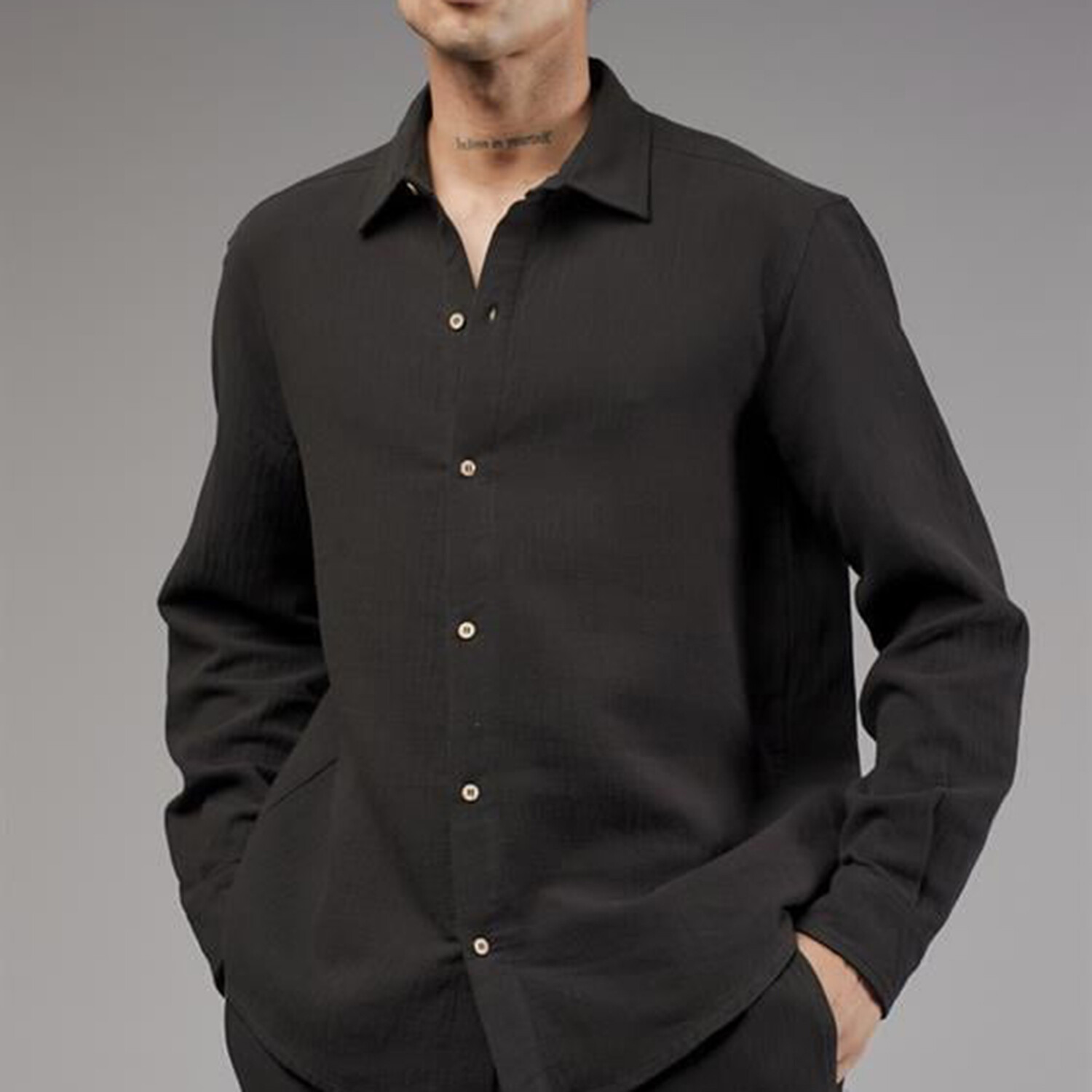 Muslin Button-Up Shirt // Black