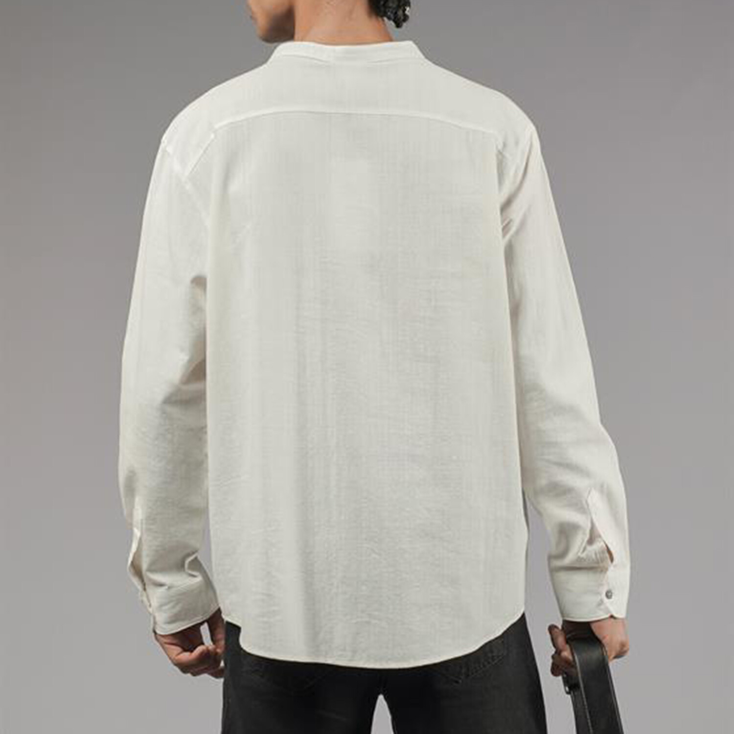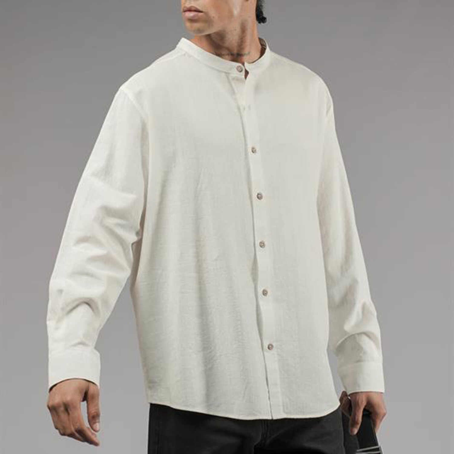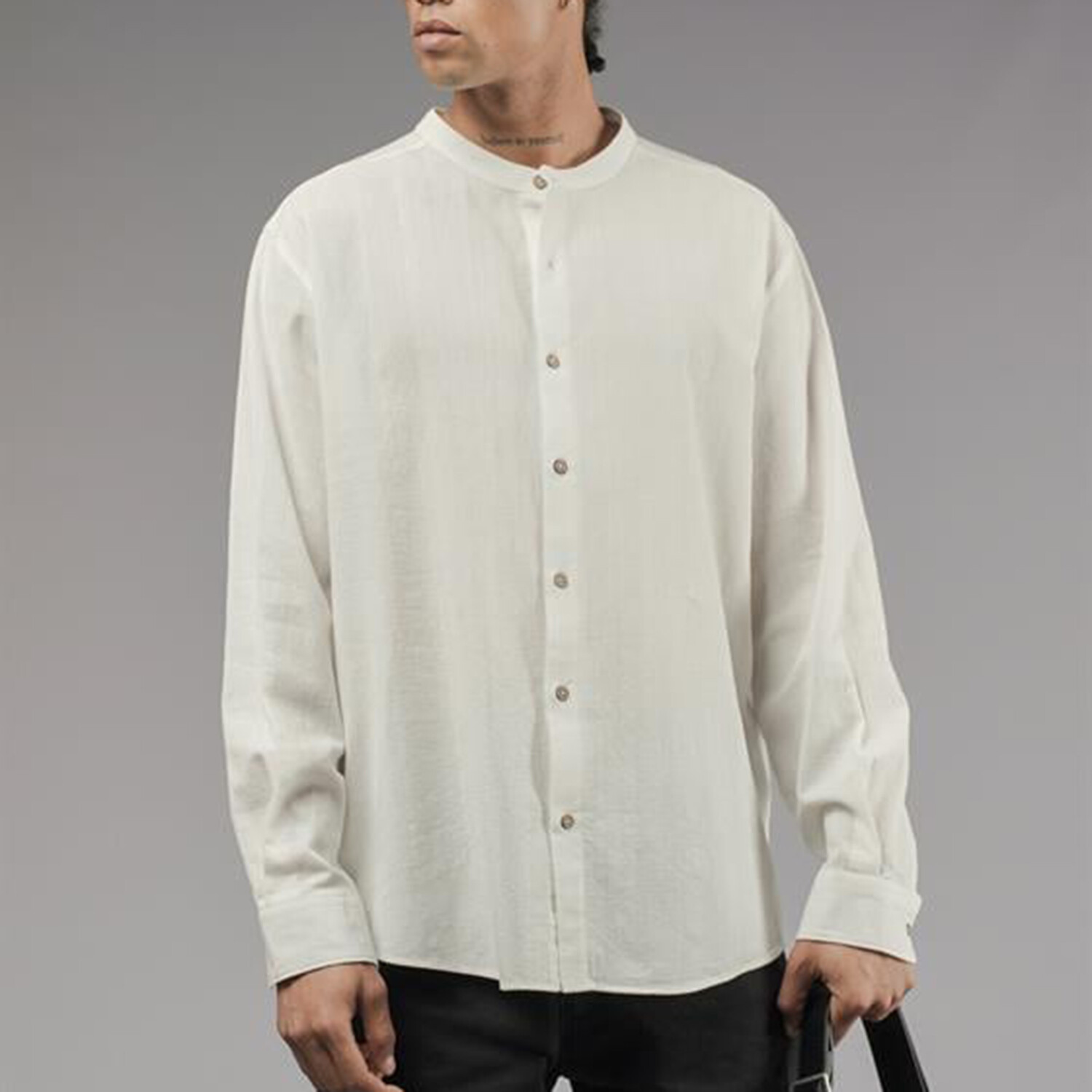 Muslin Mockneck Oversized Button-Up Shirt // White