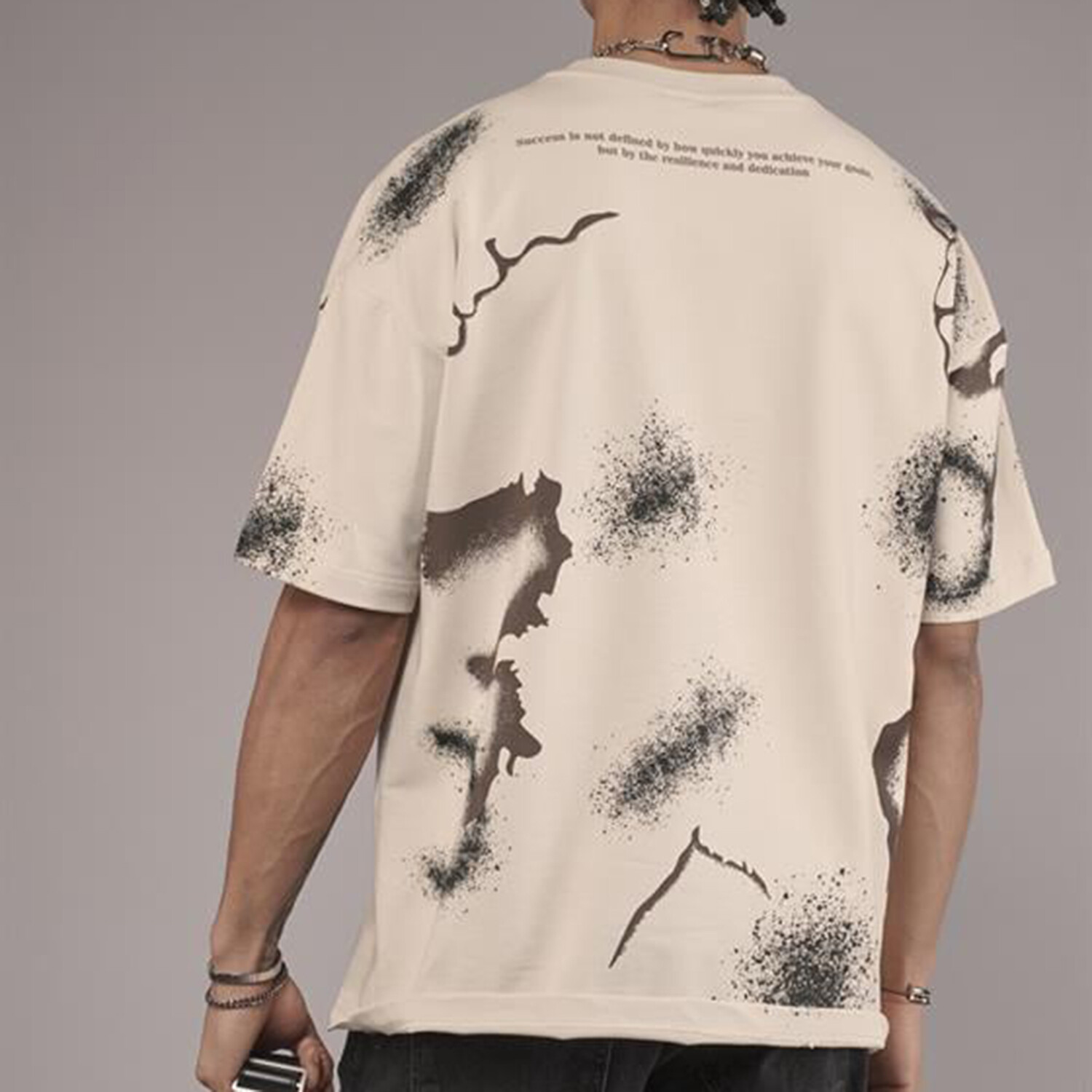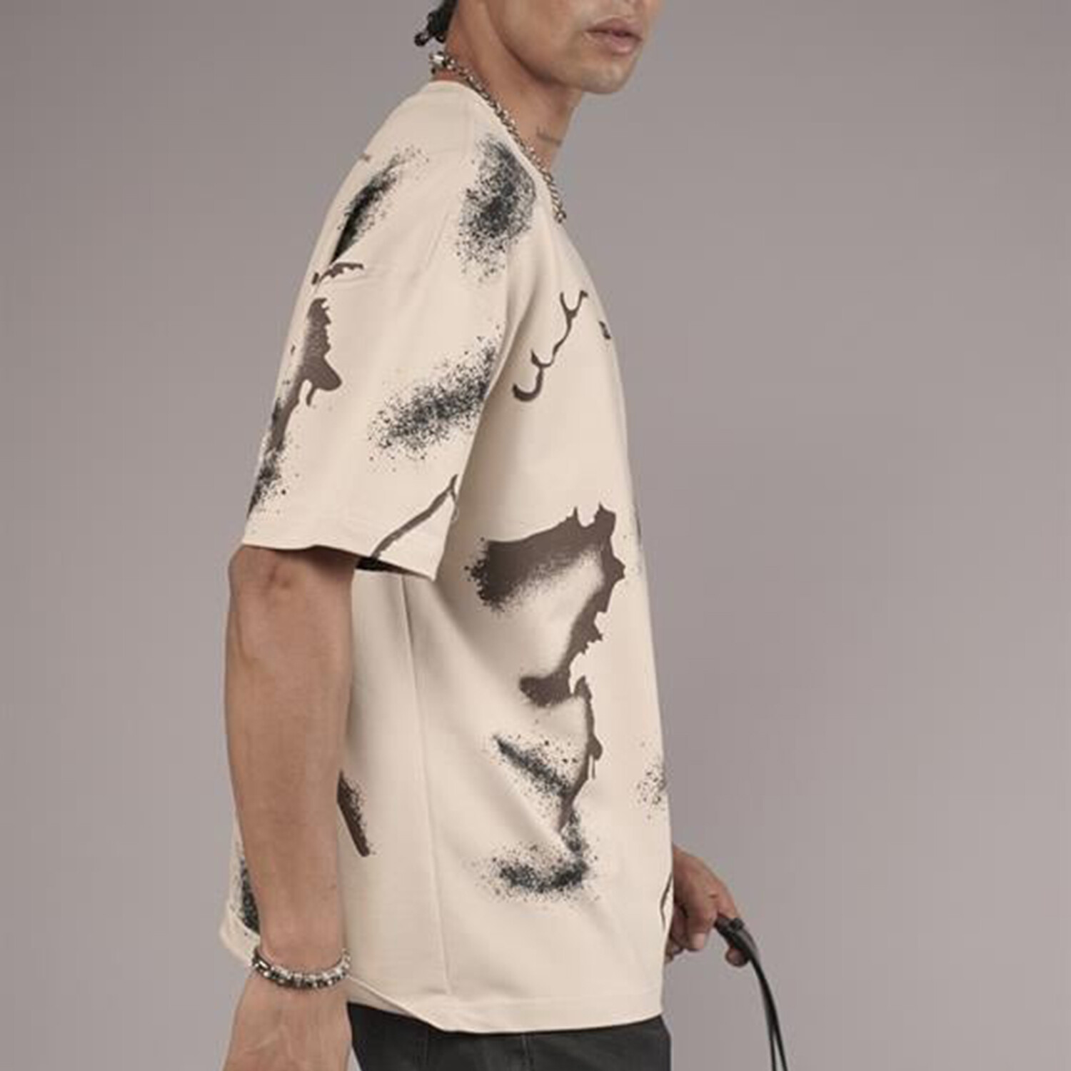 Oversized Printed Pattern Crewneck T-Shirt // Beige