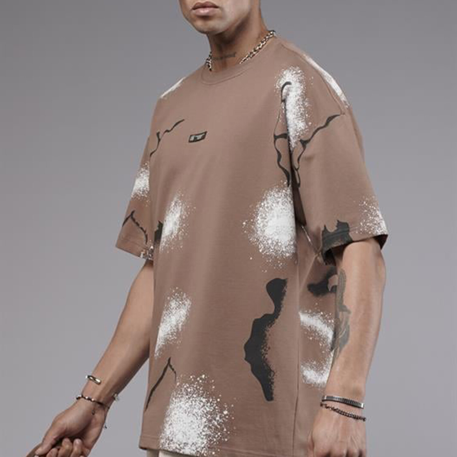 Oversized Printed Pattern Crewneck T-Shirt // Brown