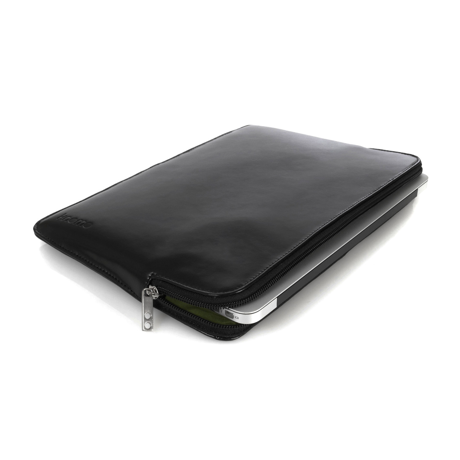 The Knomo Leather Sleeve for the MacBook Pro is sleek and stylish with a streamlined tapered design that fits your Pro perfectly, while protecting your MacBook from knocks and bumps. The sleeve is well-cushioned thanks to the padded velveteen lining, yet is slim enough to carry inside another bag.