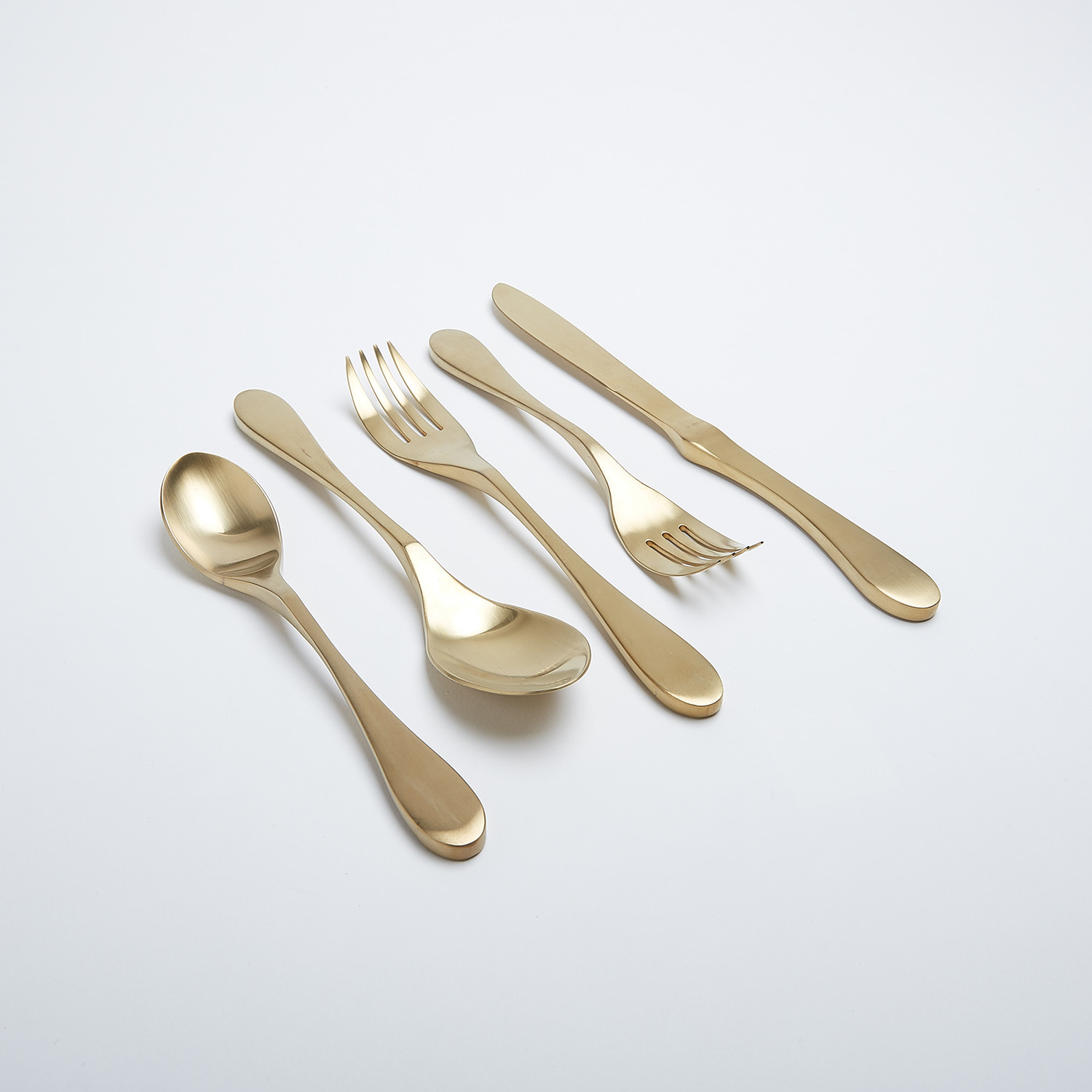 Simple and elegant, with KNORK’s contemporary curves, this Satin Brass set is fitting for everyday elegance or a sparkling special occasion. Rather than heavy brass, the set is actually crafted from stainless steel with a lightweight titanium coating, designed to elevate your meal and your tabletop. Each set includes service for one.
