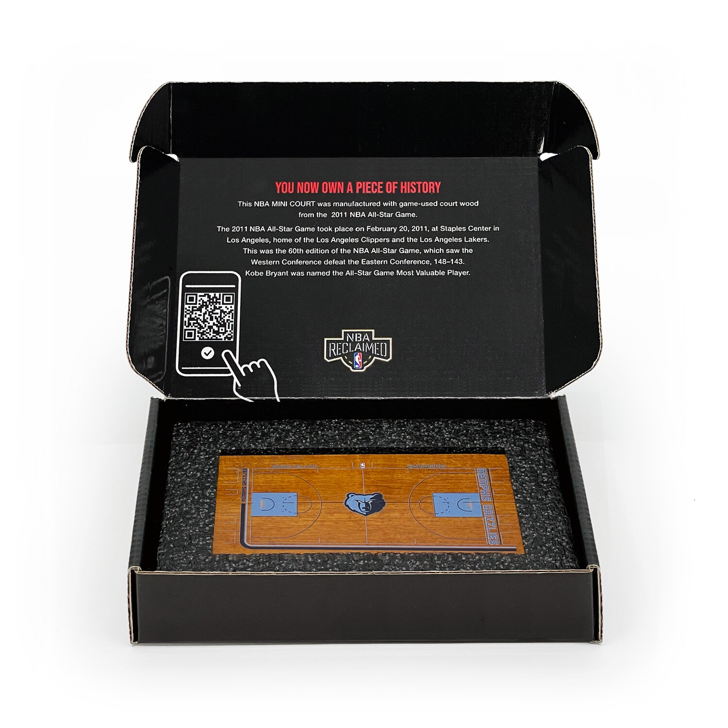 Each limited-edition mini court featuring your favorite NBA team's home court design was manufactured with game-used court wood from the 2011 NBA All-Star Game and includes a Certificate of Authenticity (COA) that also indicates the origin of where your piece of floor you receive was taken from that very game as indicated on the COA. You will recieve the home court design as seen in the pictures and title of this item.