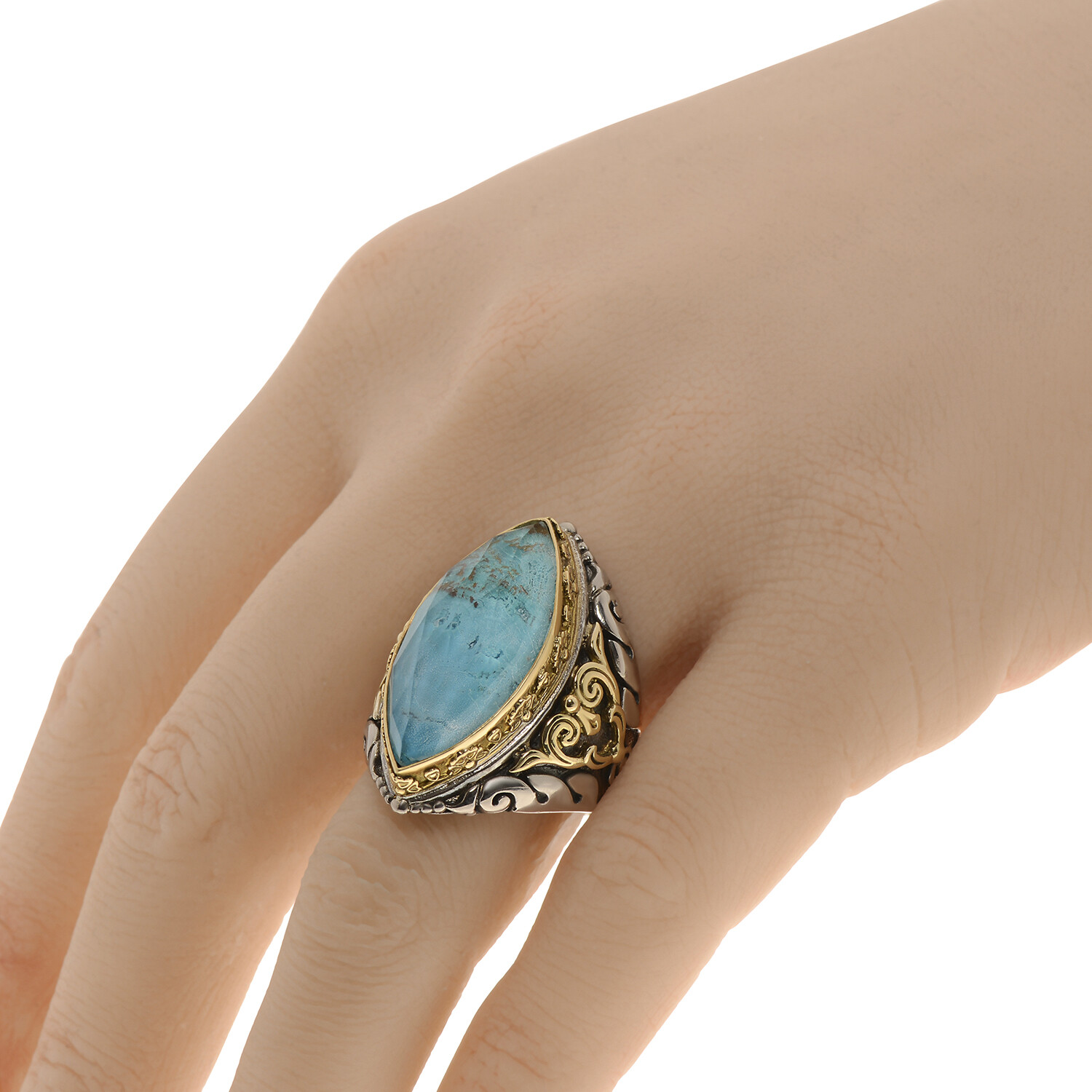 Iliada Sterling Silver + 18K Yellow Gold + Chrysocolla Statement Ring // Ring Size: 7 // New