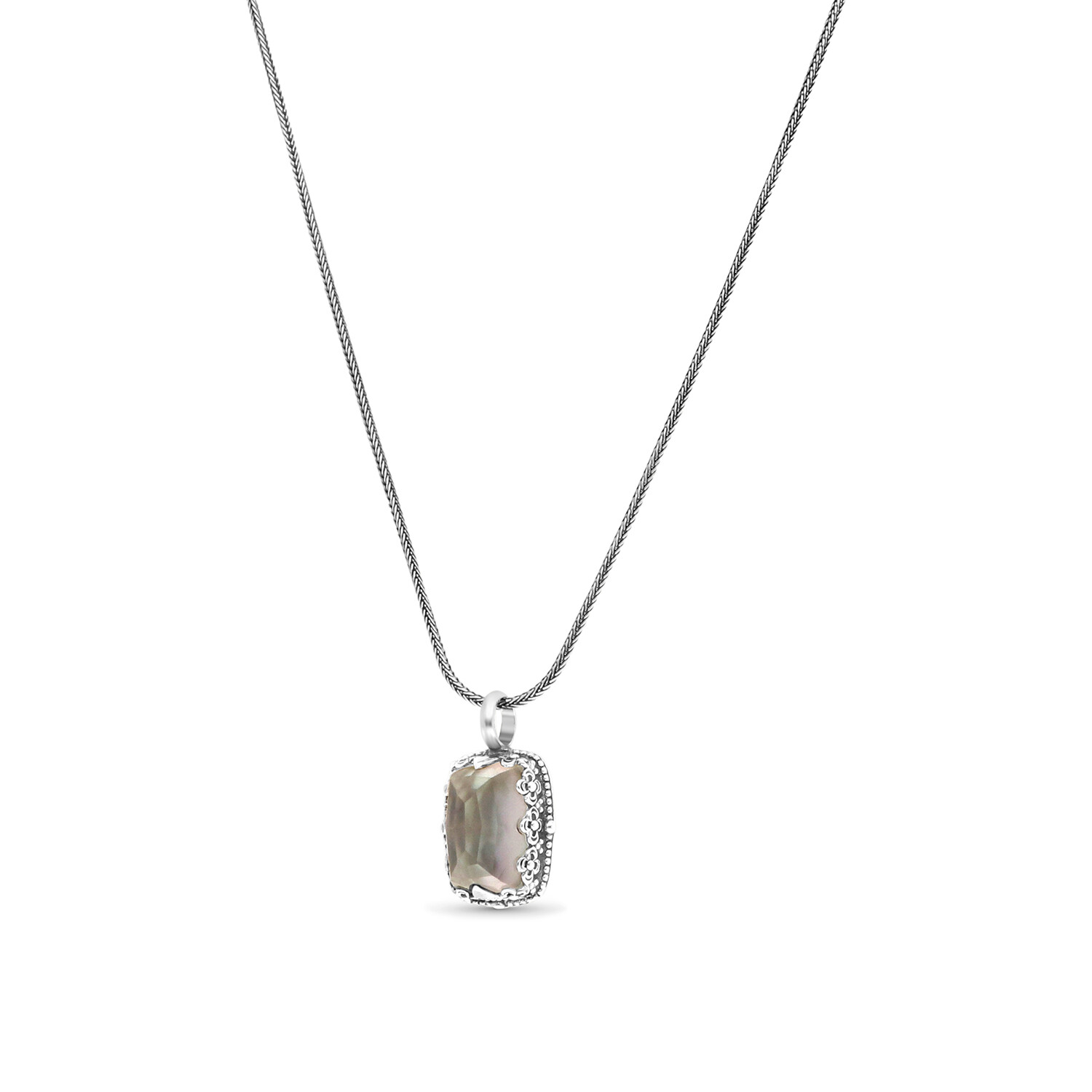 Sterling Silver + Mother Of Pearl + Rock Crystal Doublet Pendant Necklace I // 18" // New