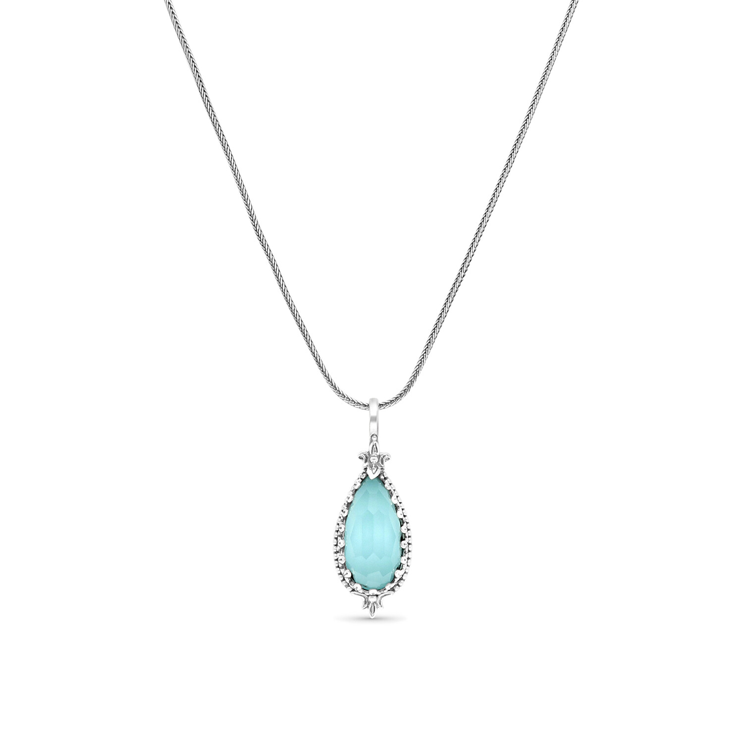Sterling Silver + Turquoise + Rock Crystal Doublet Pendant Necklace I // 18" // New