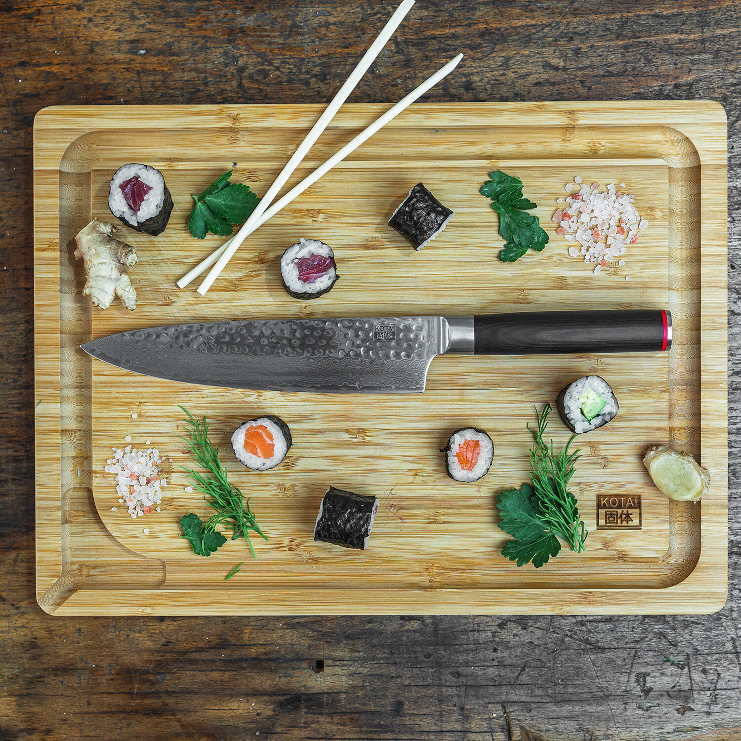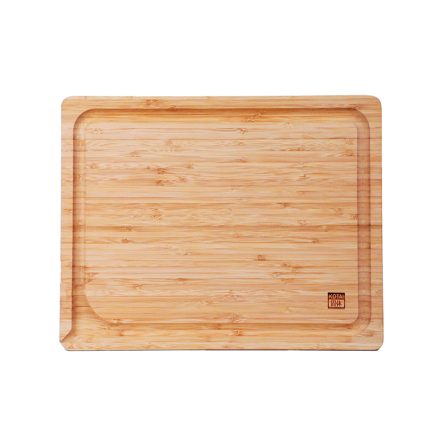 The Kotai Bamboo Cutting Board is an essential tool in your kitchen to protect your countertop and the edge of your knives. Made of natural bamboo sustainably grown in Fujian, China, this board is thick and pre-dried bamboo to prevent cracking, warping, or it getting wobbly. It's also naturally antibacterial and anti-fungal. One side features a juice reservoir and pouring groove, while the other side remains completely flat for easy scooping of minced herbs and dry foods. Hidden handles provide an easy grasp while keeping minimalist aesthetics.
