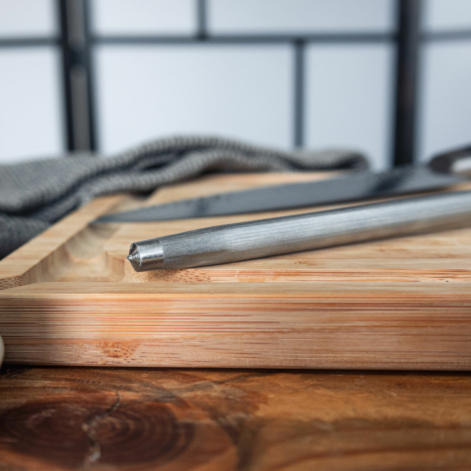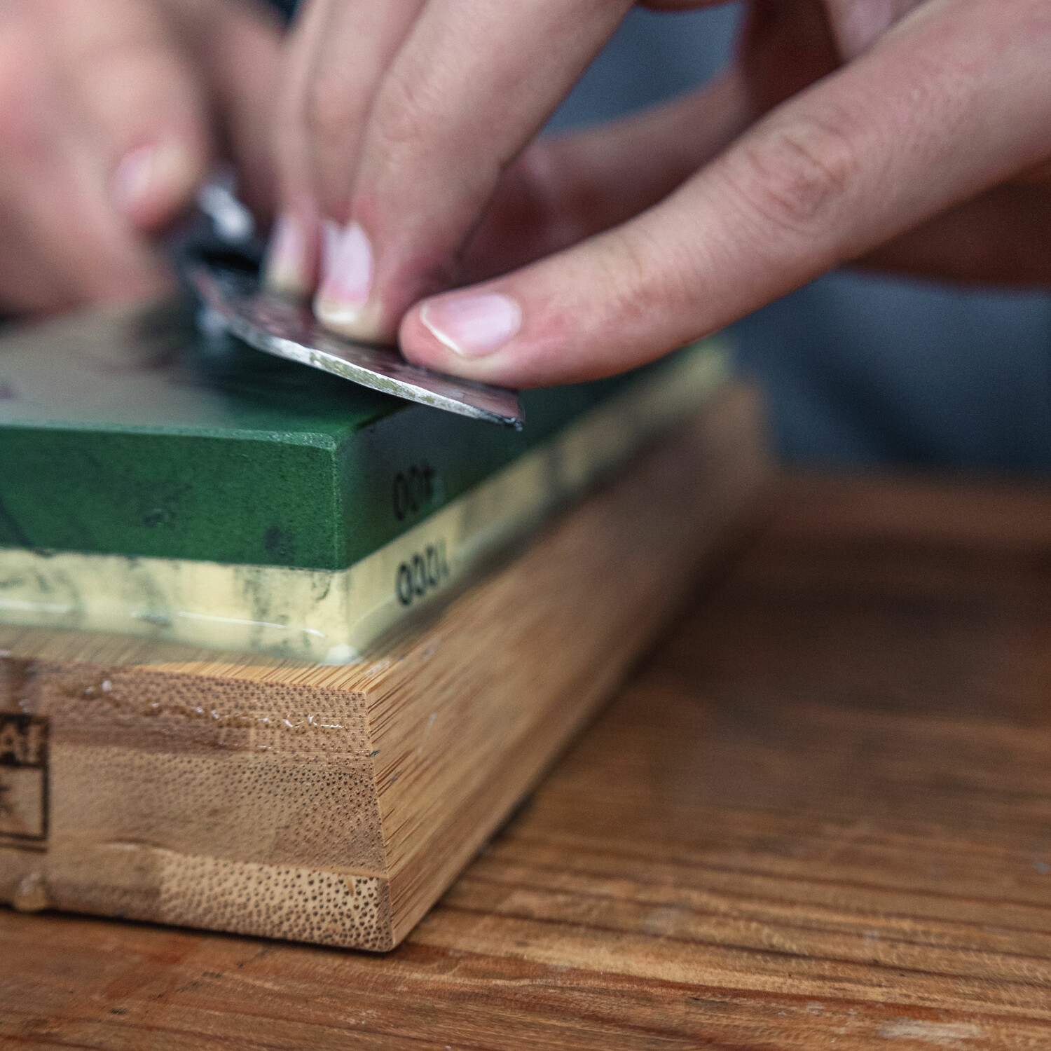 The Essential Set Deluxe Edition has blades sharpened to a double bevel grind giving the edge an optimal angle of 15 ̊ per side (vs. 20-25 ̊ for most Western knives), Kotai knives perfectly balance extreme sharpness and blade solidity.
