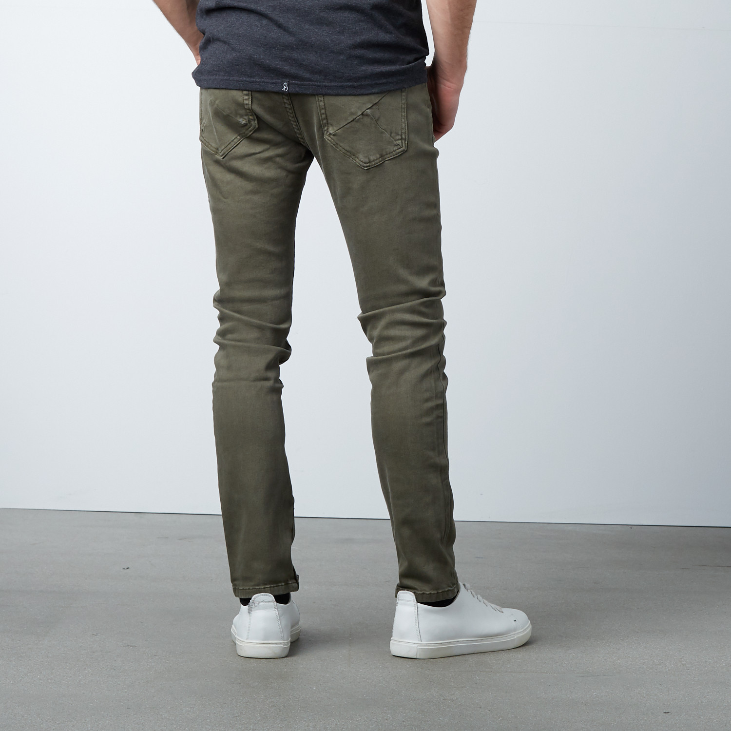 The jeans sit right below the waist. The front rise including the waistband is 23cm.