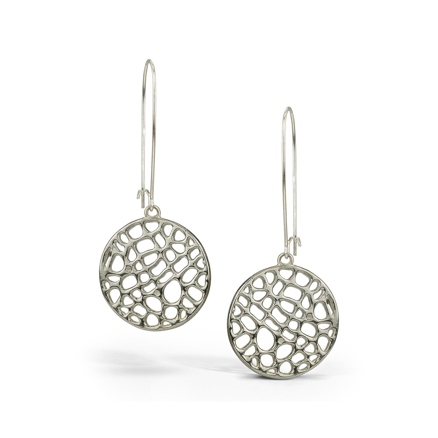 These sterling silver dangle earrings feature the honeycomb pattern of a the prickly pear cactus makes this pair of Cactus Dangle Earrings an eyecatching couple of details in your daily look. The organic style gives these earrings a lightweight and visually stunning look that you're sure to love.