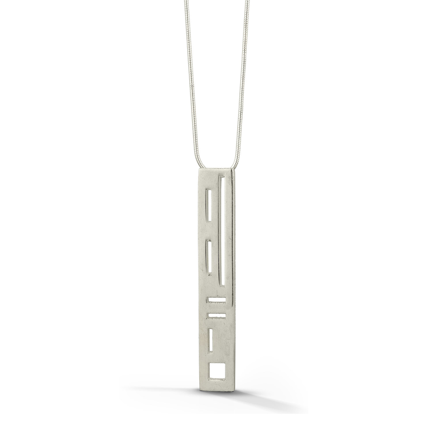 La Corza masterfully blends the art and science of jewelry design in the Element Architectural Drop Necklace inspired by the concepts of Frank Lloyd Wright. Traditional jewelrymaking techniques meet the new age of technology in this stunning silver pendant on an elegant silver chain.